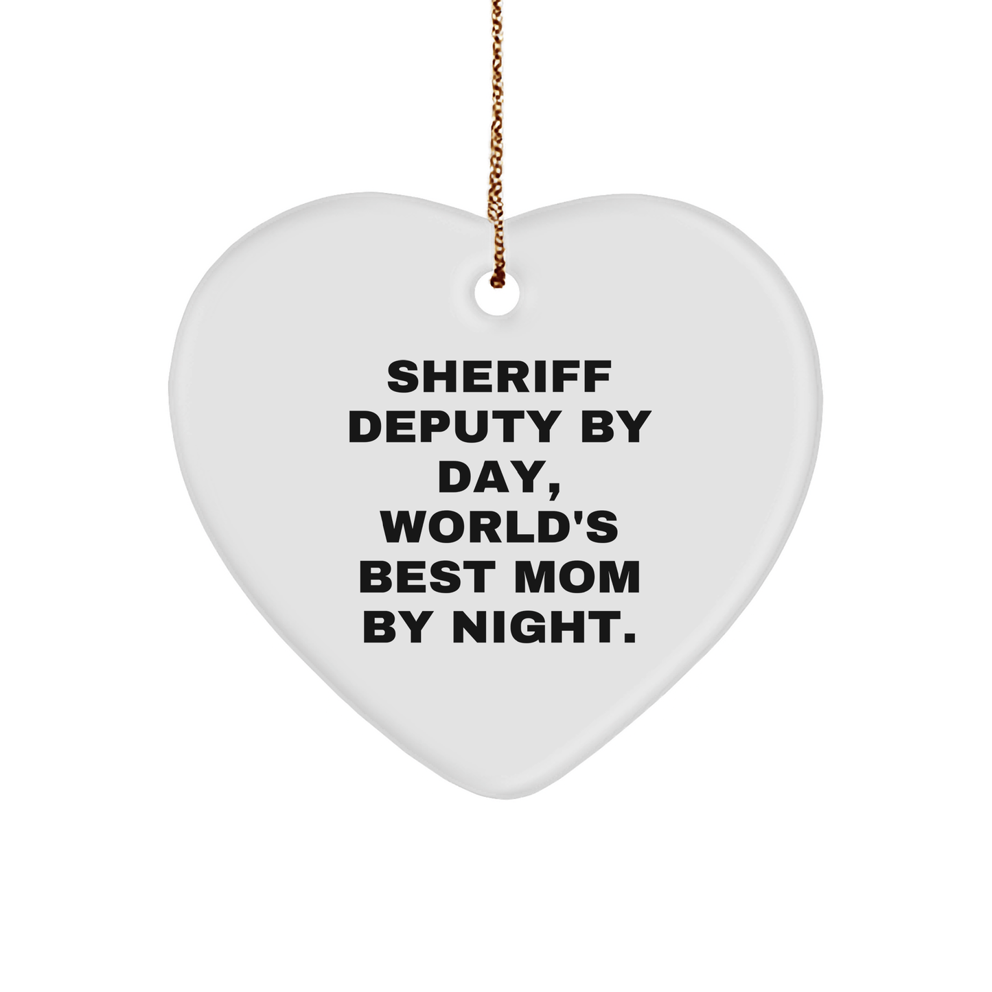 - Make a memorable gift for your favorite Sheriff Deputy with this unique 'Sheriff Deputy By Day, World's Best Mom By Night.' heart ornament. Perfect for those who serve and protect their community by day, and shower love and care by night.