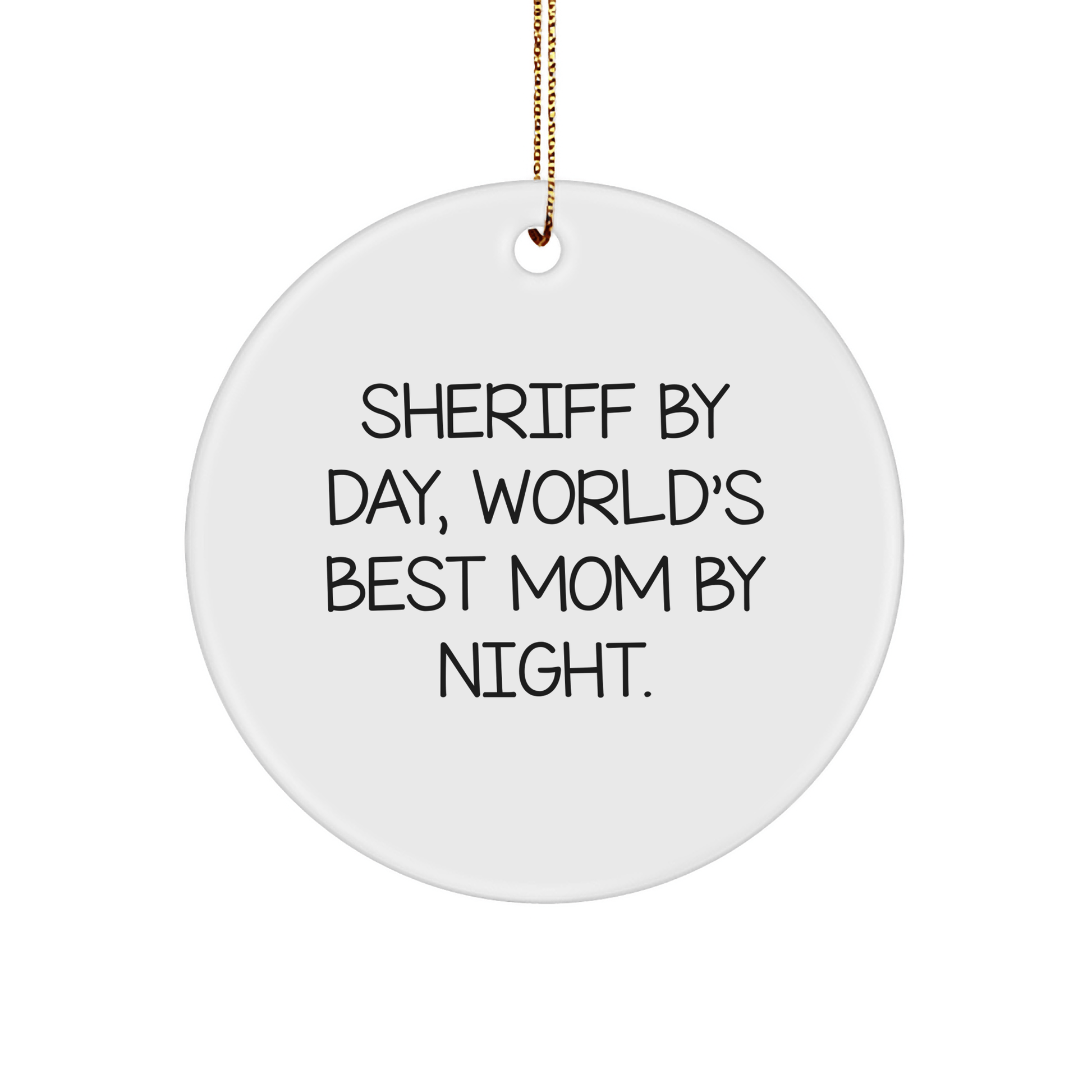 - This 'Sheriff By Day, World's Best Mom By Night.' Circle Ornament is a thoughtful gift idea for the Sheriff in your life, perfect for Christmas or any occasion.