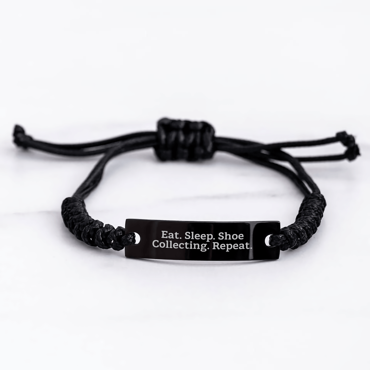 Are you a shoe collecting enthusiast? Do you live and breathe everything shoe related? Then you're in the right place! This Rope Bracelet is a must-have accessory for any shoe collector. The quote 'Eat. Sleep. Shoe Collecting. Repeat.' sums up the passion and dedication that shoe collectors have for their beloved shoes.