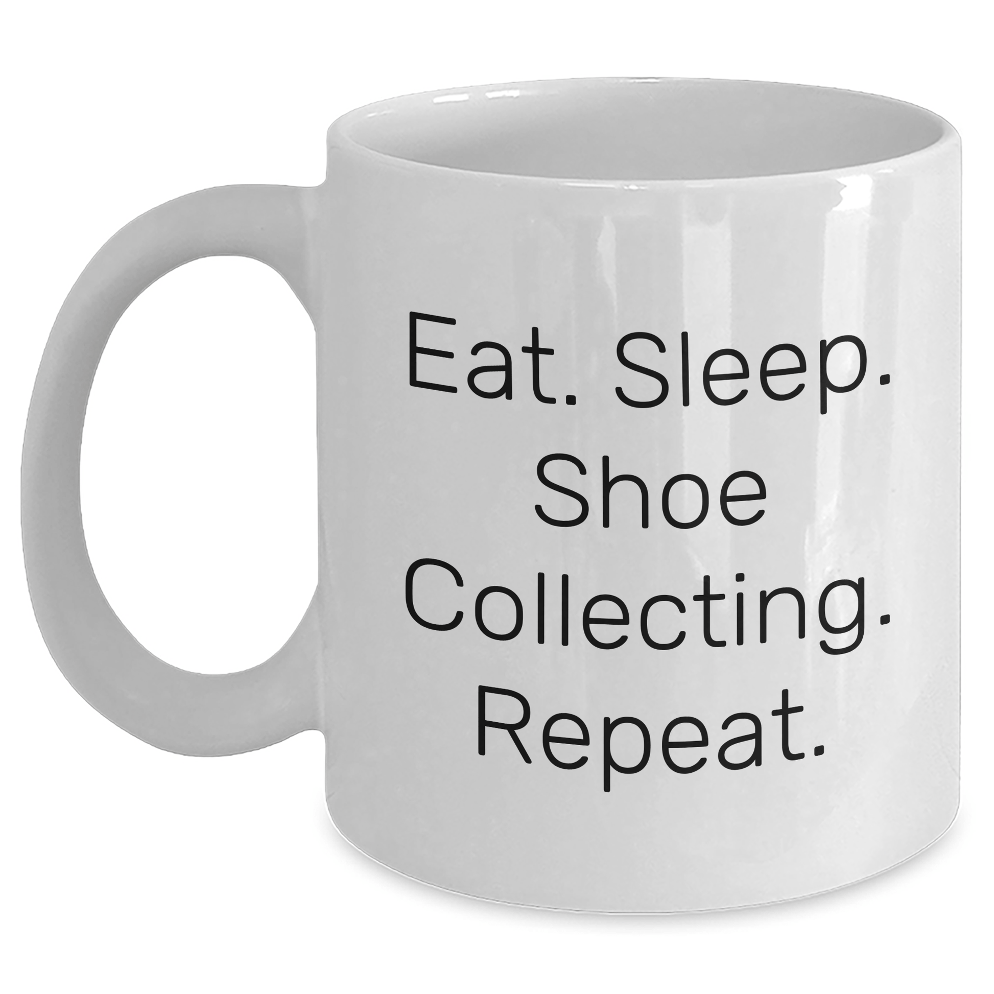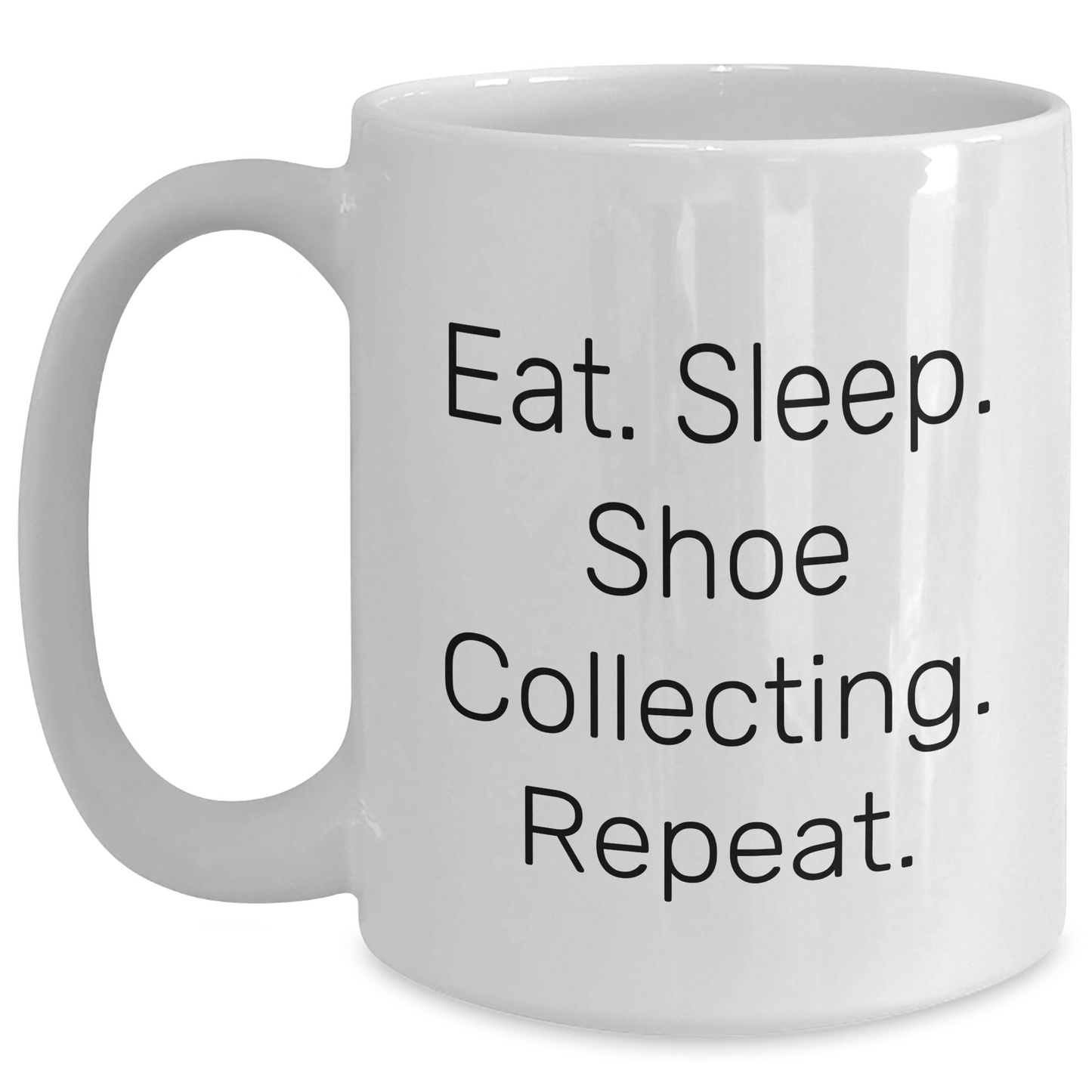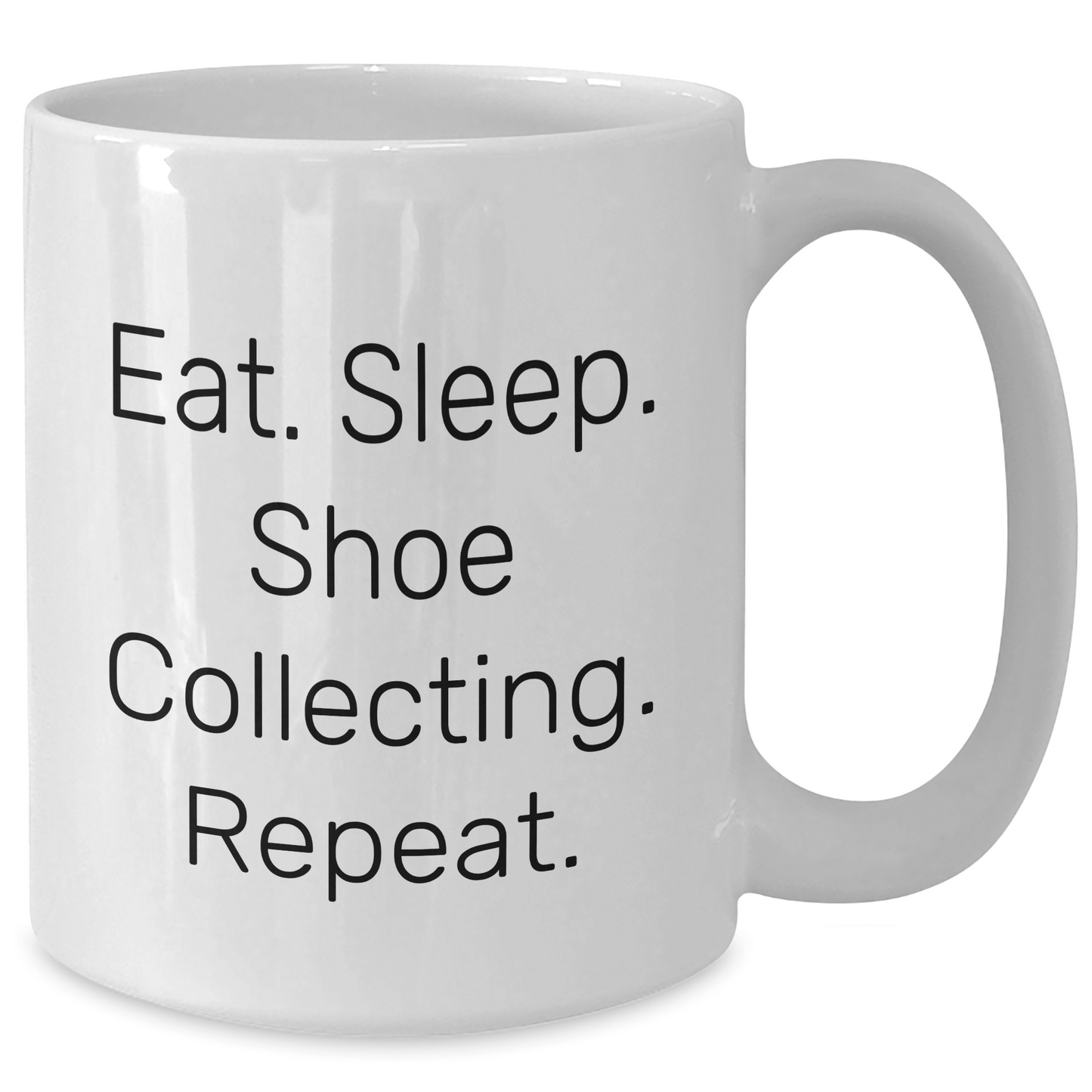 - Make a statement with this humorous white coffee mug that celebrates the unique hobby of shoe collecting