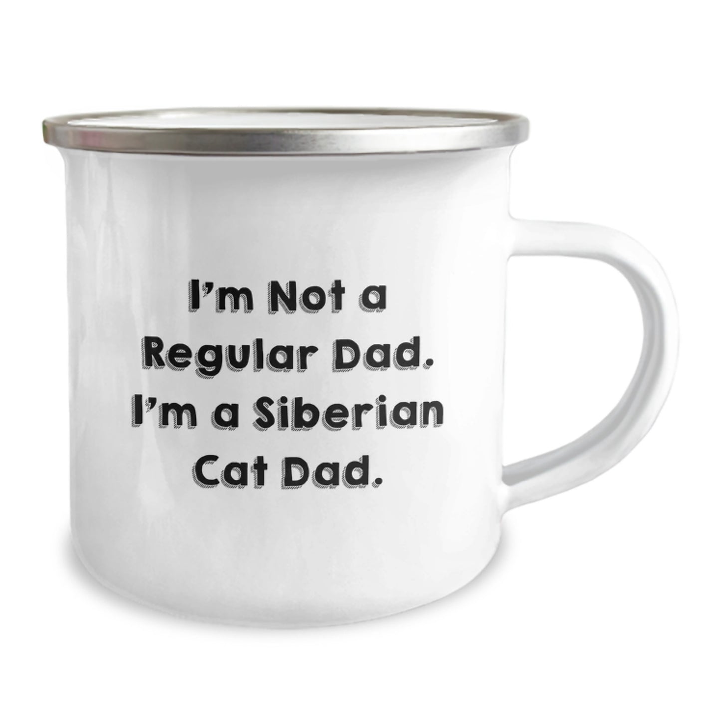 Are you a Siberian Cat enthusiast or looking for a unique gift for the cat lover in your life? This funny camping mug is the purr-fect choice! Made of stainless steel with an enamel finish, this mug is sturdy and easy to clean. With a 12 oz capacity, it's perfect for hot or cold beverages on-the-go. The permanent printing won't fade after washing, ensuring your love for Siberian Cats remains strong for years to come. This camping mug is a thoughtful gift from friends for a birthday celebration. Share your love for these majestic creatures with your friends and family. Make it a birthday to remember! Don't settle for ordinary gifts. Give a gift that speaks to their personality and sense of humor. This Siberian Cat Dad mug is the perfect way to show off their unique sense of humor and love for their feline friends. Treat yourself or gift it to a fellow Siberian Cat lover. Either way, this camping mug is sure to bring a smile to their face. So, go ahead and make it a birthday to remember!