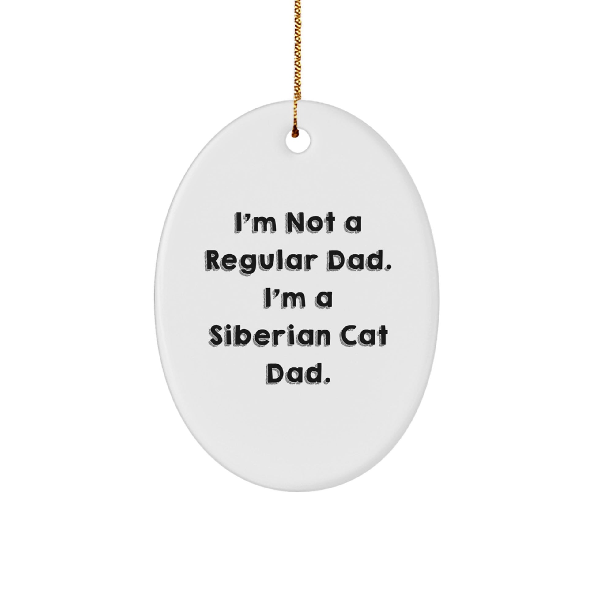 This Siberian Cat Oval Ornament is a thoughtful gift for any cat lover, and the funny quote 'I'm Not A Regular Dad. I'm A Siberian Cat Dad.' is sure to bring a smile to their face. Whether you're looking for a gift for your spouse, child, or friend, this ornament is a great option. So why wait? Get yours today and show your love and appreciation for your feline friend's human!