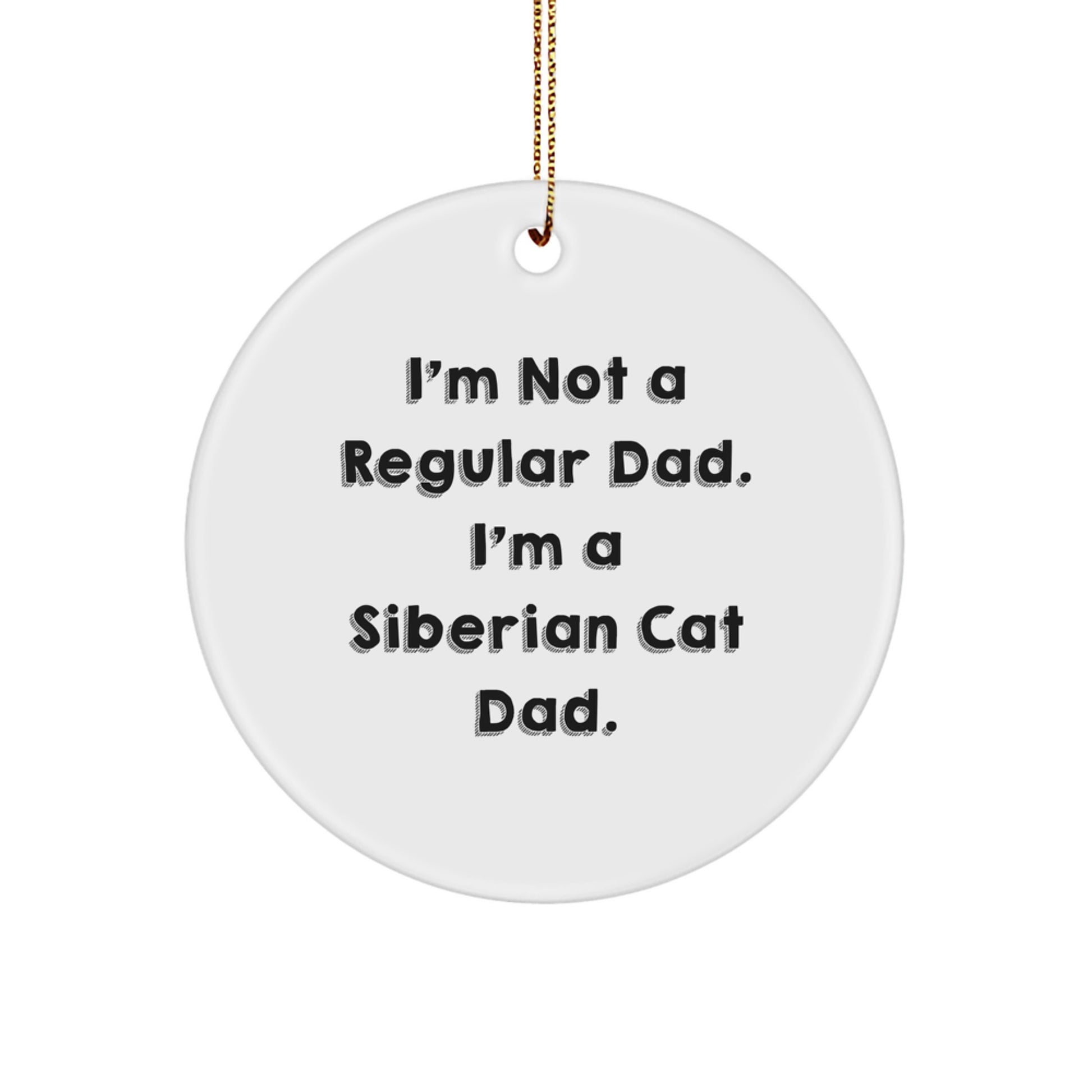 - Made from sturdy MDF with a high-gloss plastic finish, this ornament is lightweight and resistant to breaking, making it a great choice for households with children or pets. The quote 'I'm Not A Regular Dad. I'm A Siberian Cat Dad.' is a funny and relatable message for any Siberian Cat lover.