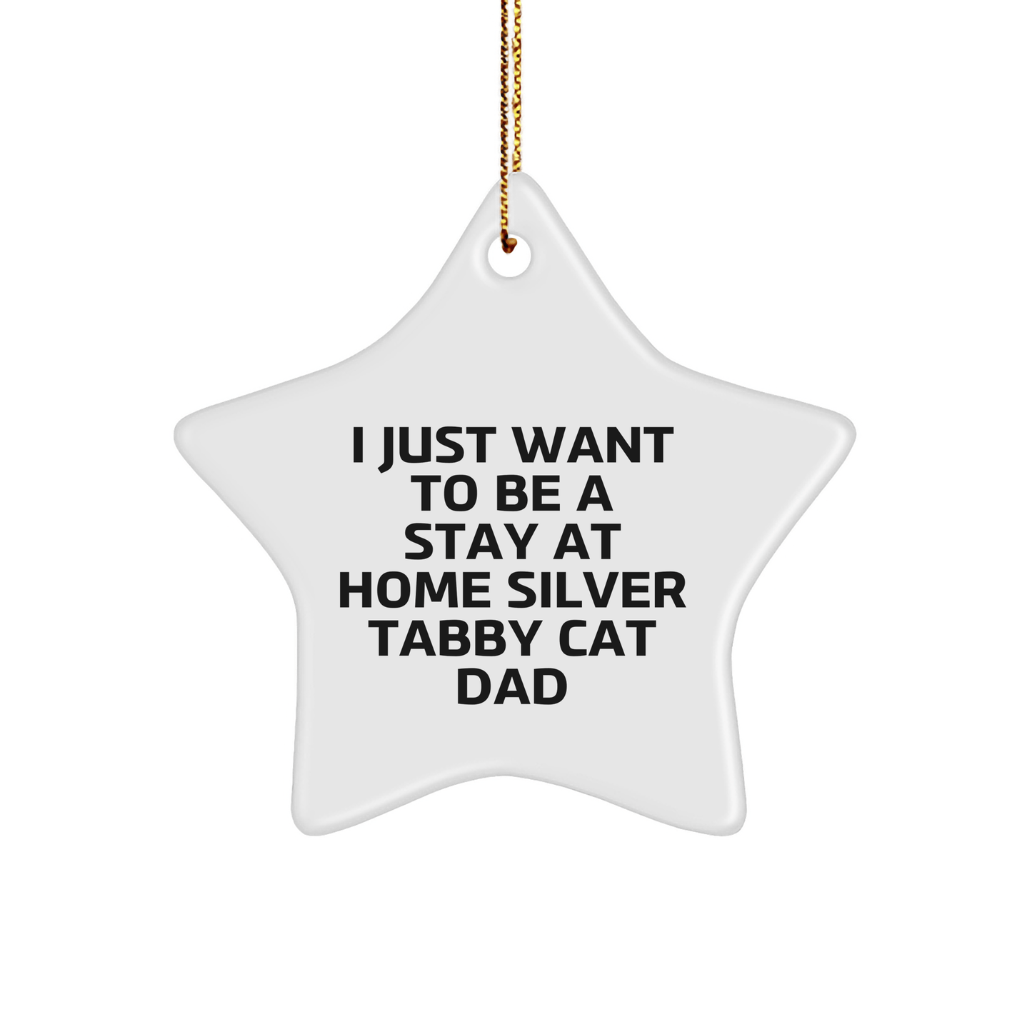 As the quote says, 'I Just Want To Be A Stay At Home Silver Tabby Cat Dad.' This ornament is the purrfect way to make that dream a reality. With its easy-to-hang design and festive gold cord, it's the perfect addition to any Christmas tree or mantle. So why not give the gift of a Silver Tabby Cat dad's Christmas wish this holiday season?