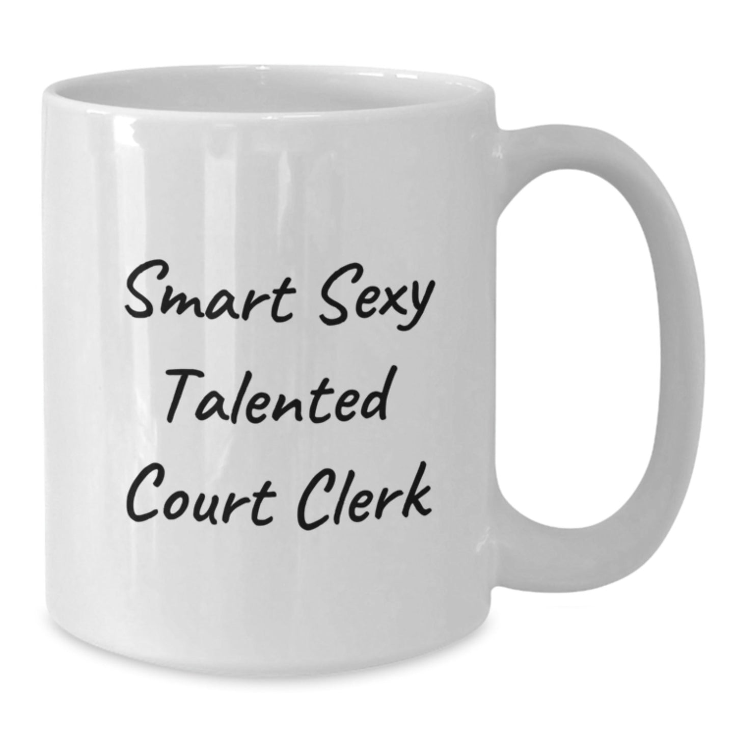 - The quote 'Smart Sexy Talented' is printed on the mug to remind the court clerk of their exceptional skills and abilities.