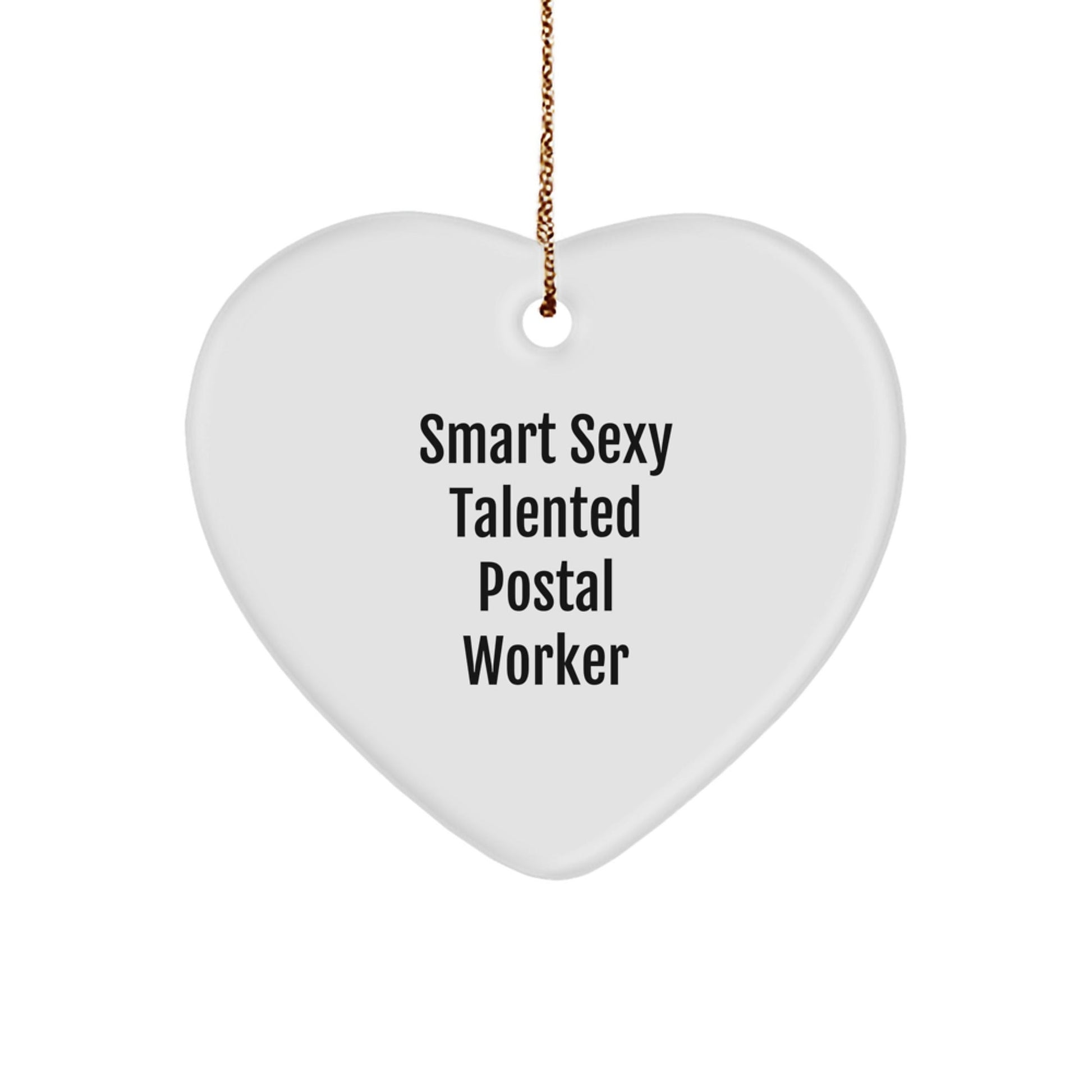 Are you looking for a thoughtful gift for the hardworking postal worker in your life? Look no further! This Smart Sexy Talented Postal Worker Heart Ornament is the perfect way to show your appreciation for their dedication and hard work. With its vibrant colors and cute design, this ornament is sure to bring a smile to their face. Made from sturdy MDF with a high-gloss plastic finish, this ornament is lightweight and resistant to breaking, making it a great choice for households with children or pets.