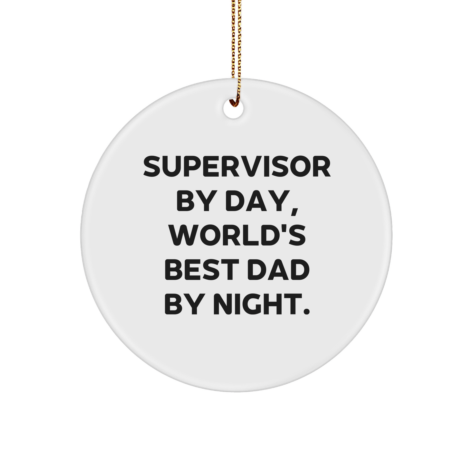 - This ornament is also a great way to show your supervisor that you care. With a funny quote that says 'Supervisor By Day, World's Best Dad By Night', this gift is sure to bring a smile to their face.
