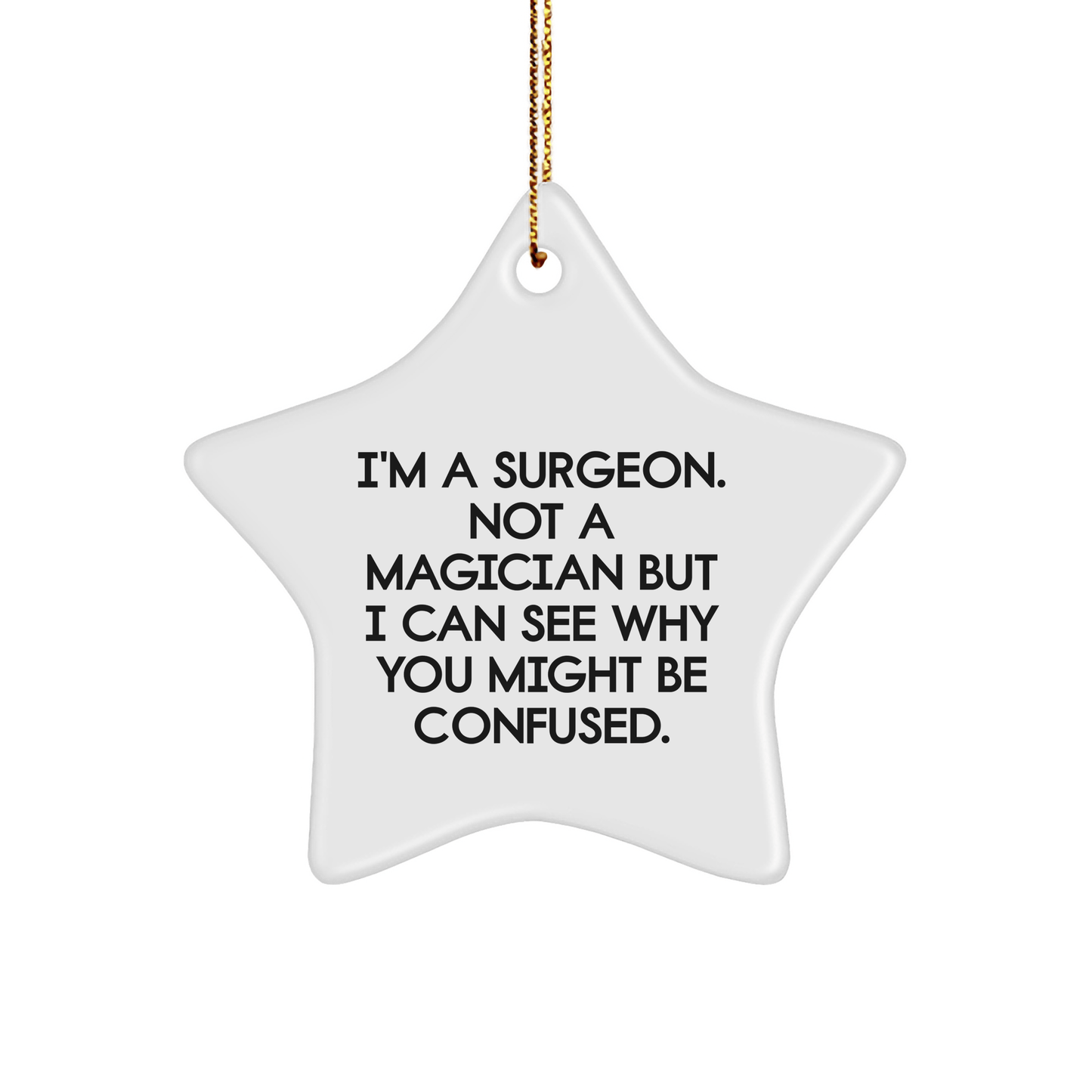 Whether you're looking for a gift for a surgeon or just want to add some personality to your holiday decor, this star ornament is the perfect choice. So why wait? Get your 'I'm A Surgeon. Not A Magician' star ornament today and make this holiday season one to remember!