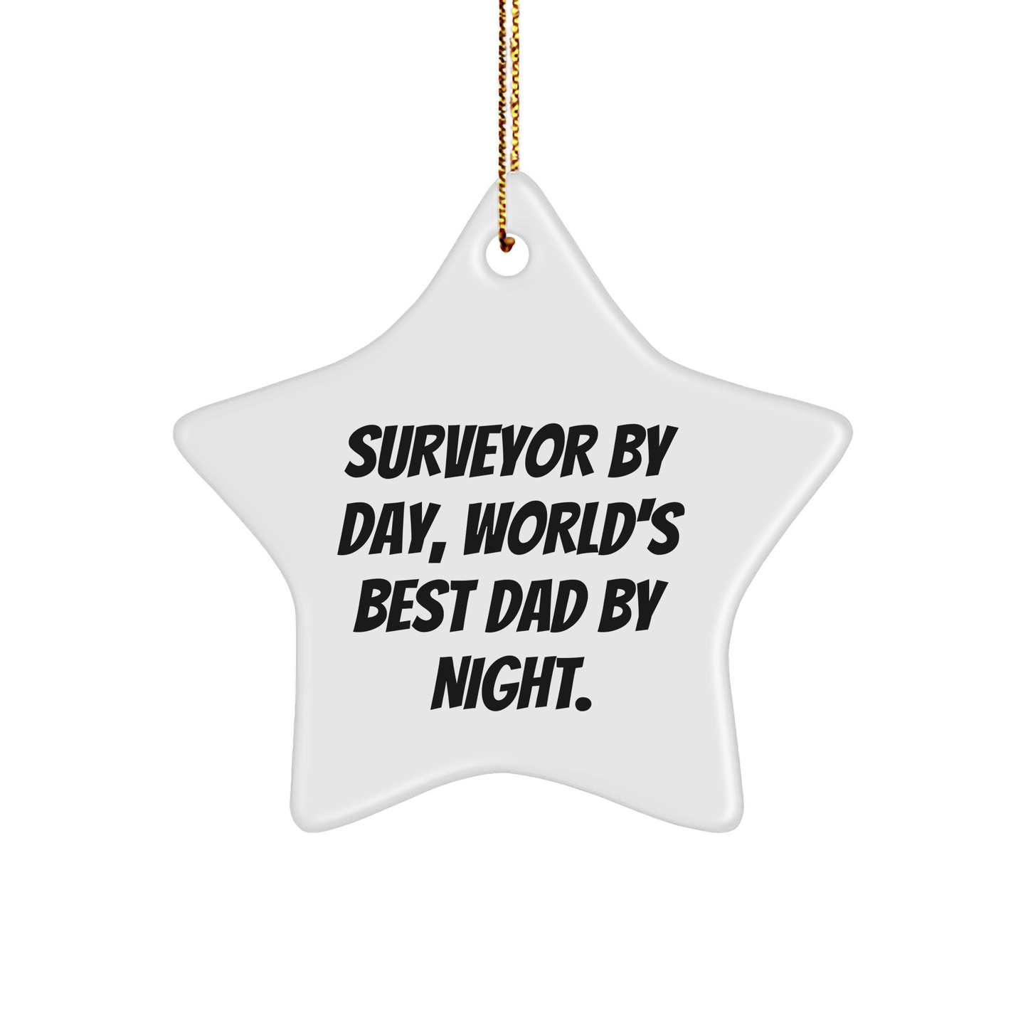 - This Surveyor Star Ornament is the ideal gift for the Surveyor By Day, World's Best Dad By Night. in your life, showcasing their unique profession with pride. Its vibrant colors and sturdy design make it a thoughtful and long-lasting gift.