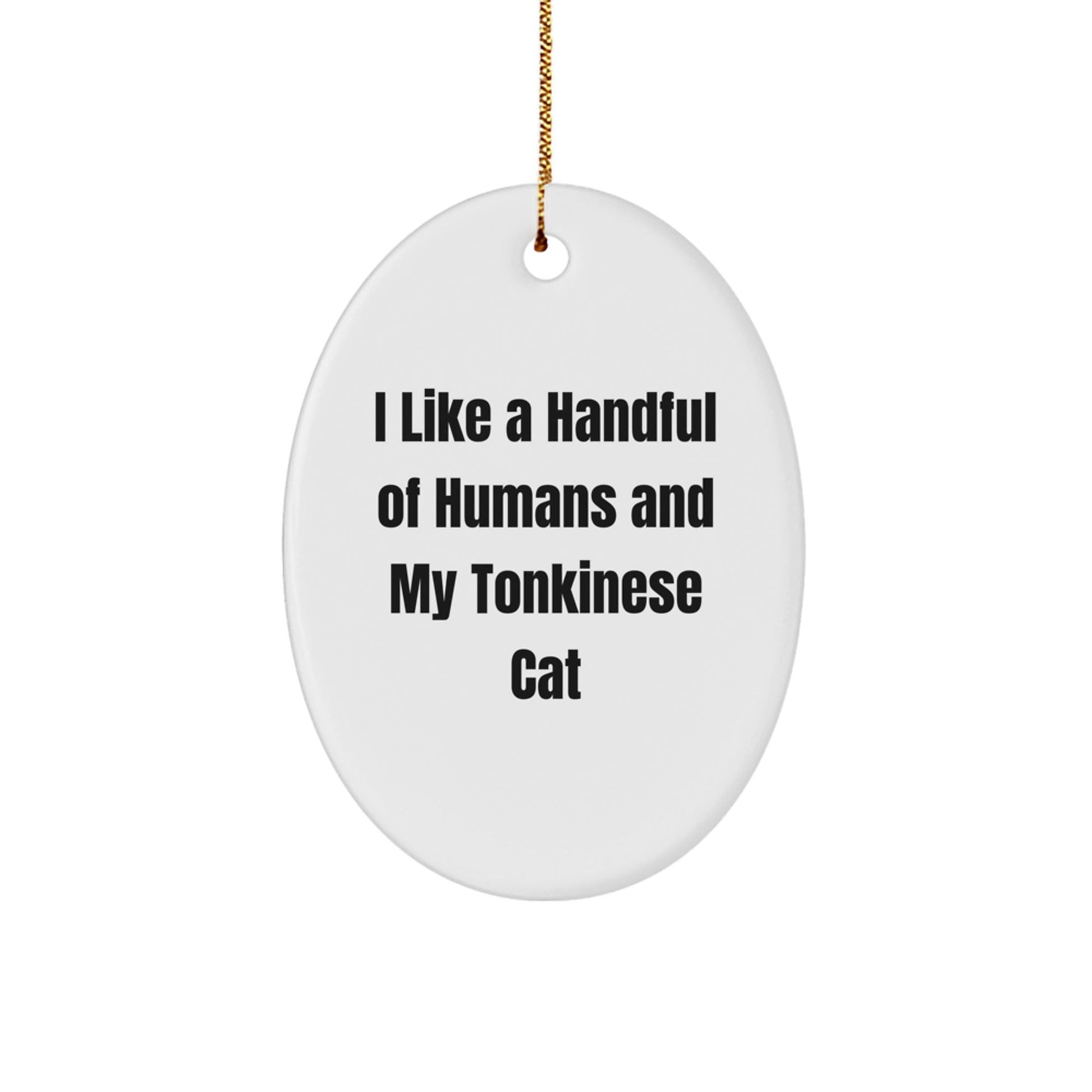 - Bring a smile to your face with this funny quote 'I Like A Handful Of Humans And My Tonkinese Cat' printed on a sturdy and lightweight oval ornament.