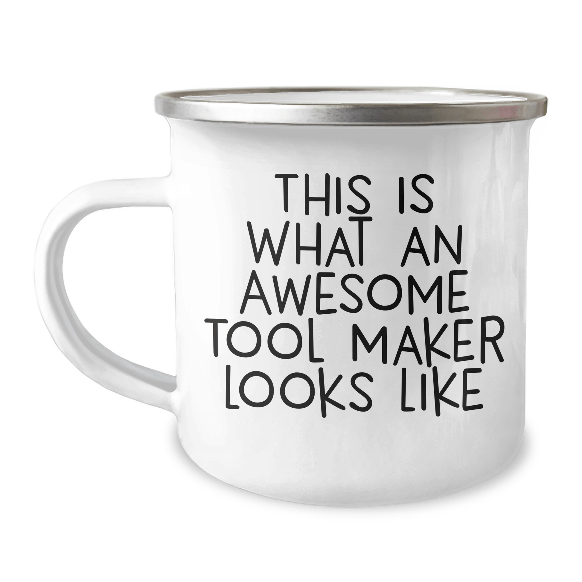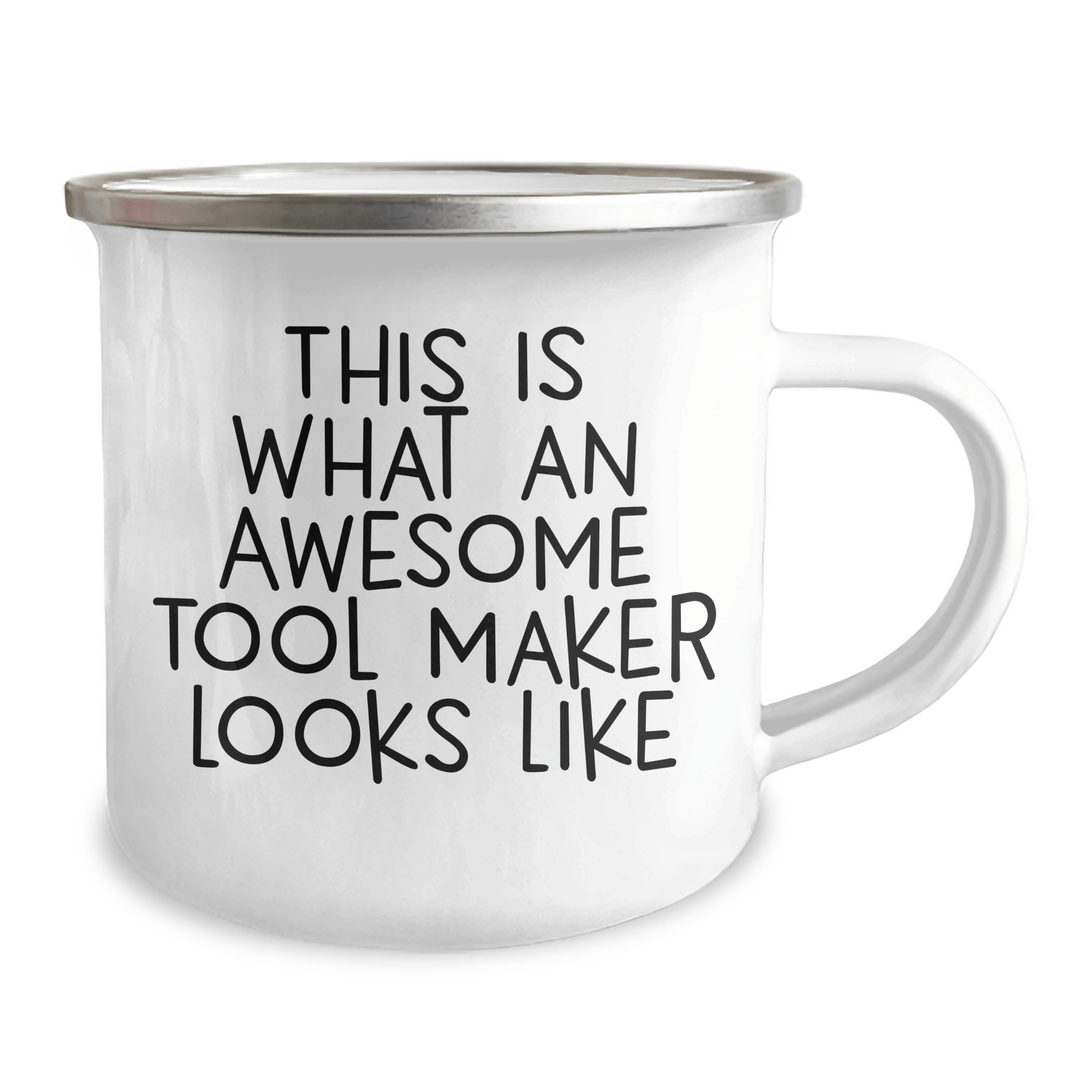 This camping mug is not just a functional item, but also a conversation starter. The quote 'This Is What An Awesome Tool Maker Looks Like' is sure to bring a smile to the face of any Tool Maker. Whether you're a seasoned outdoorsman or just a fan of camping, this mug is a great way to show off your personality. So why wait? Get your Tool Maker the gift they deserve and make their day with this amazing camping mug!