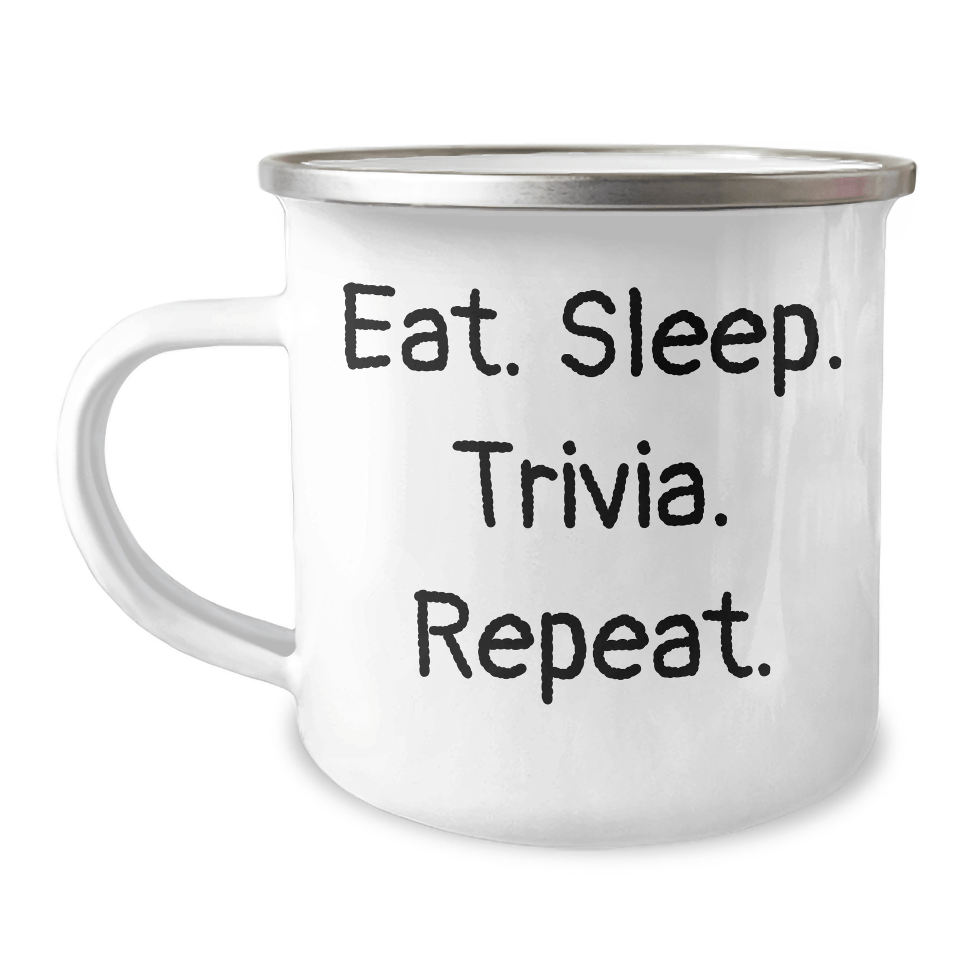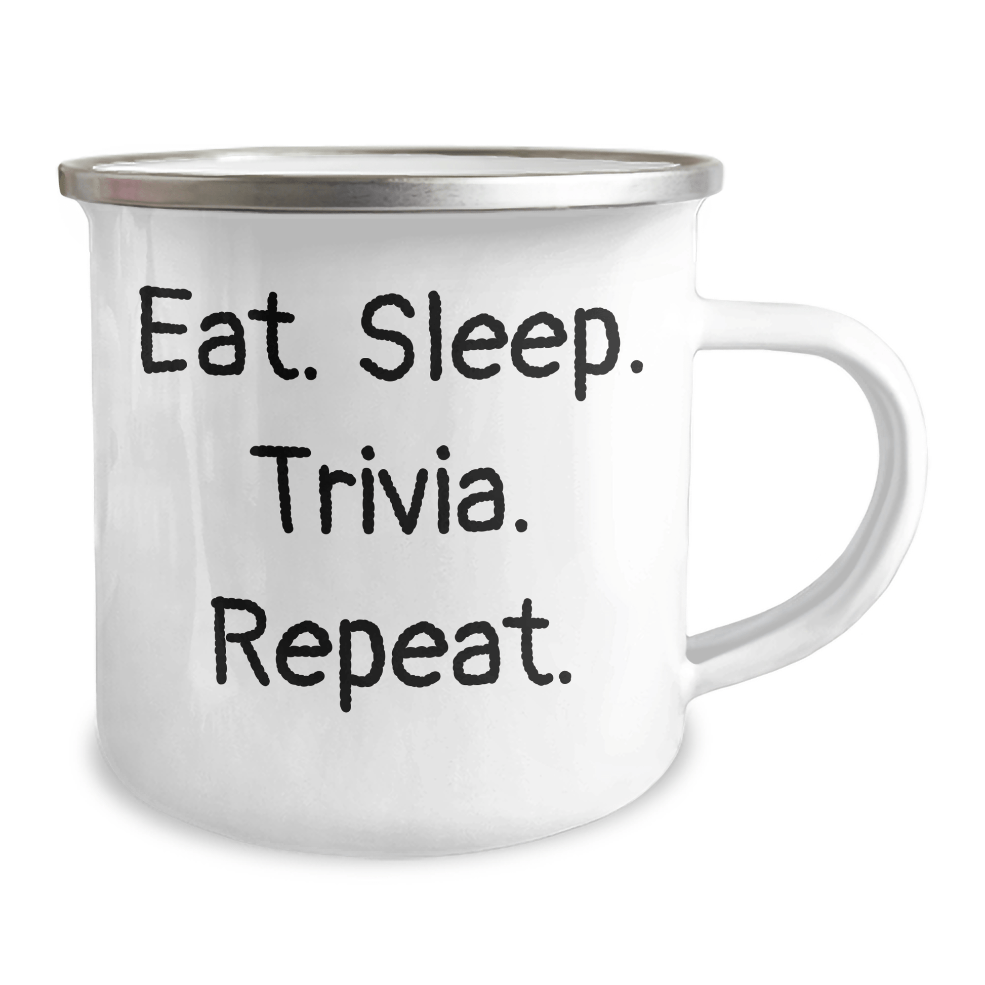 Are you a Trivia enthusiast or looking for a unique gift for a Trivia buff? Look no further! Our Eat. Sleep. Trivia. Repeat. Camping Mug is the perfect way to celebrate a Graduation or any Trivia-filled occasion.