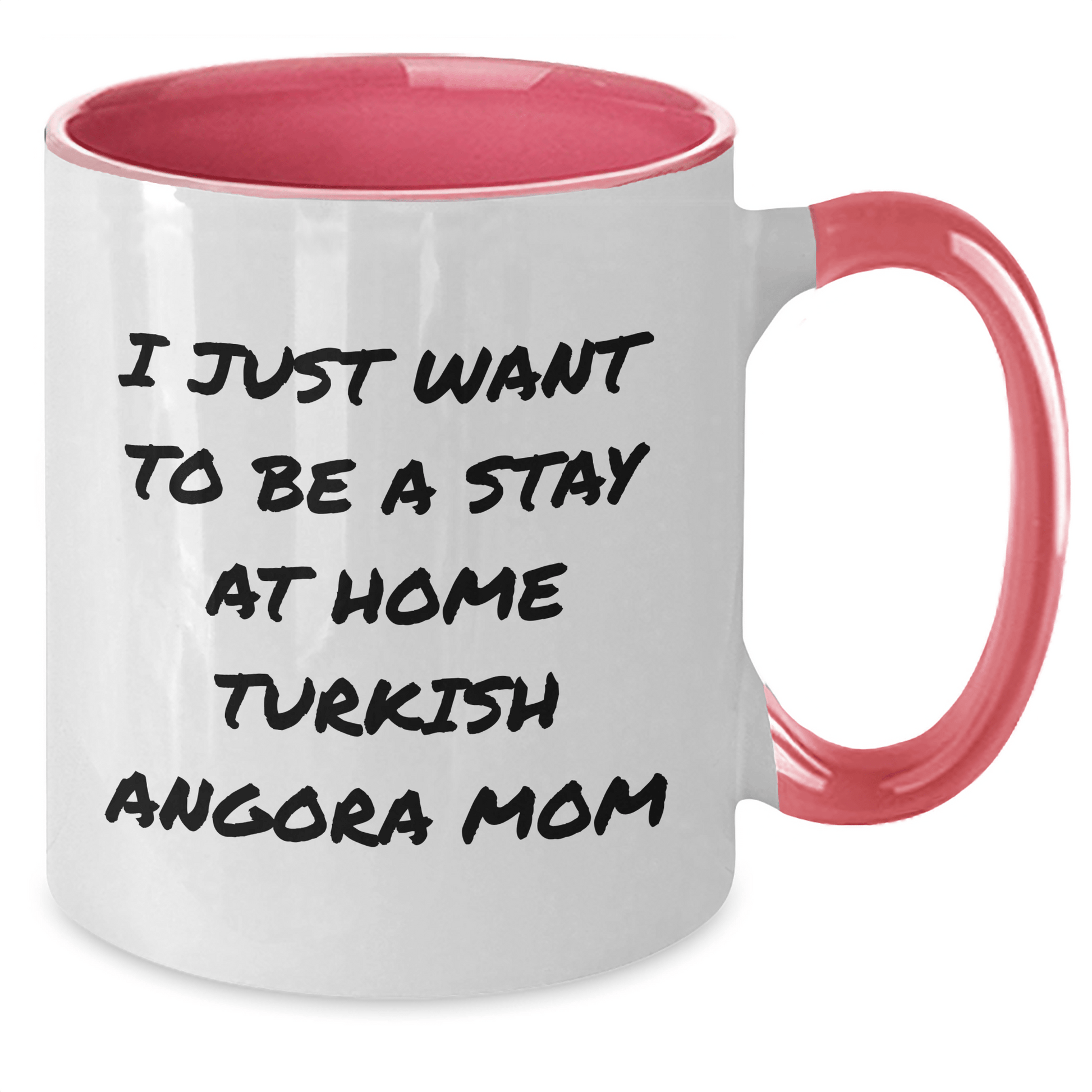 - Make a purr-fect Father's Day gift with this 'I Just Want To Be A Stay At Home Turkish Angora Mom' inspired Two Tone Coffee Mug, featuring a beautiful Turkish Angora Cat design that will delight any cat lover, with its soft and soothing colors that will brighten up their morning coffee routine, and its ceramic material ensuring a sturdy and sturdy mug for daily use.