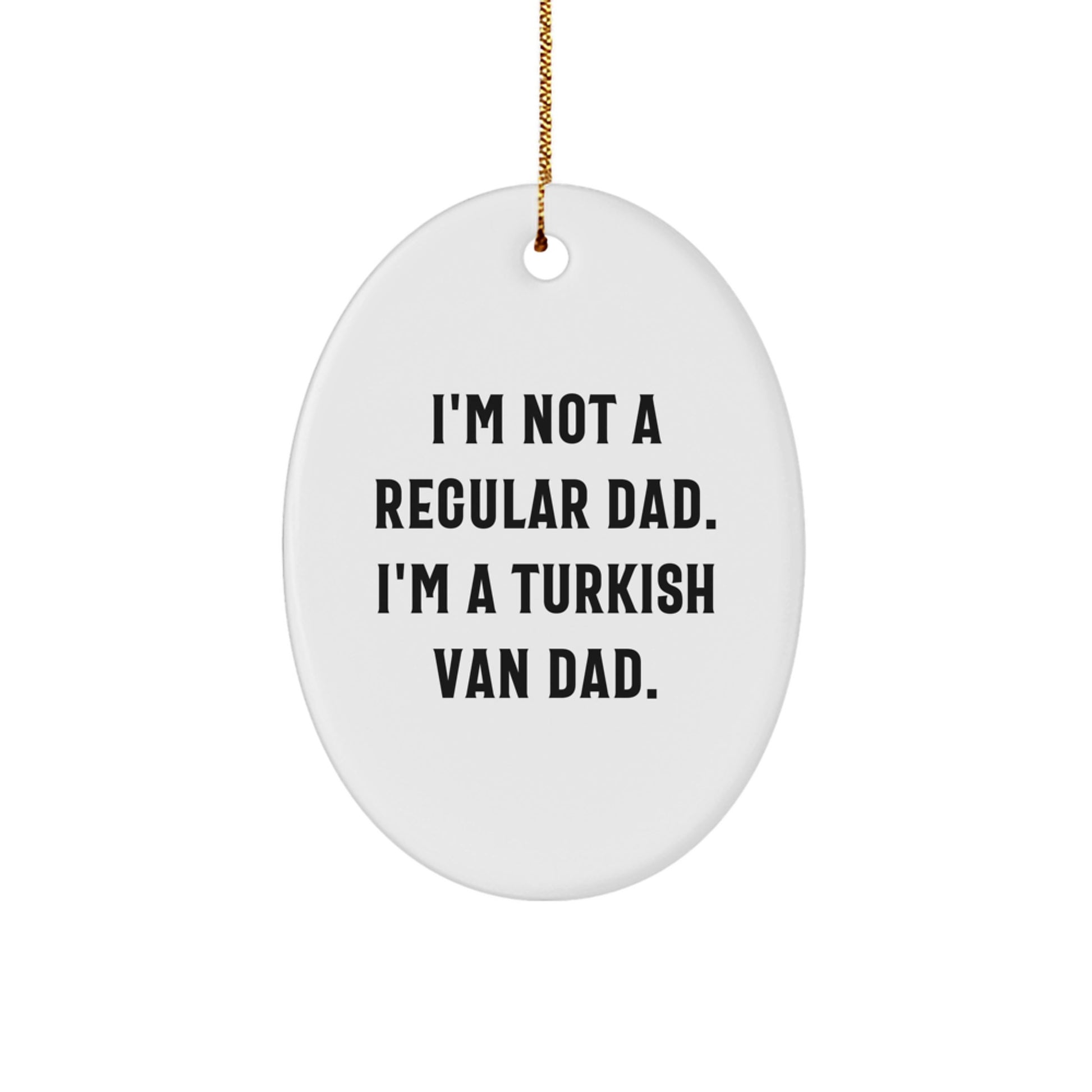 - Make a statement with this unique Turkish Van Cat Oval Ornament, featuring vibrant colors and a beautiful design that's sure to impress cat lovers and decorate enthusiasts alike. 'I'm Not A Regular Dad. I'm A Turkish Van Dad.' quote adds a touch of humor and personality to any space.