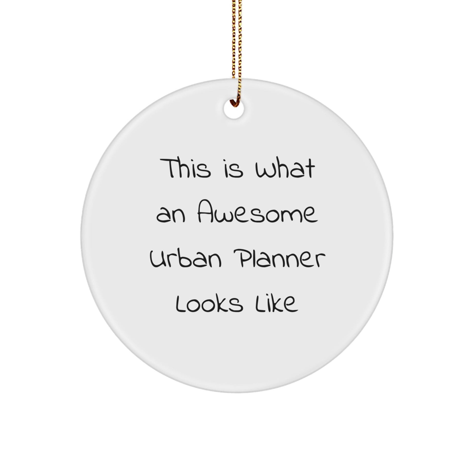 - Add a touch of urban planning flair to your holiday decor with this vibrant 'This Is What An Awesome Urban Planner Looks Like' Circle Ornament, crafted from durable MDF with a high-gloss plastic finish for a long-lasting design. Perfect for urban planners, architects, or anyone who loves urban planning, this ornament is a great way to showcase your personality during the holiday season.
