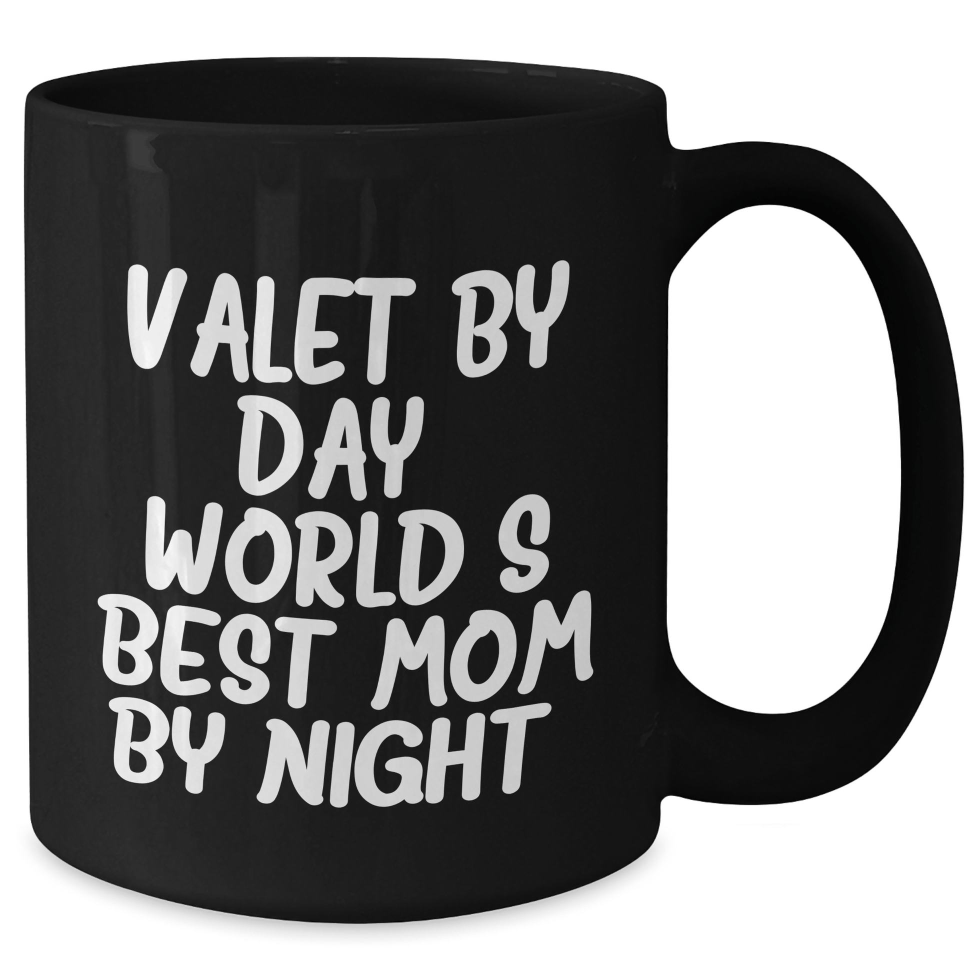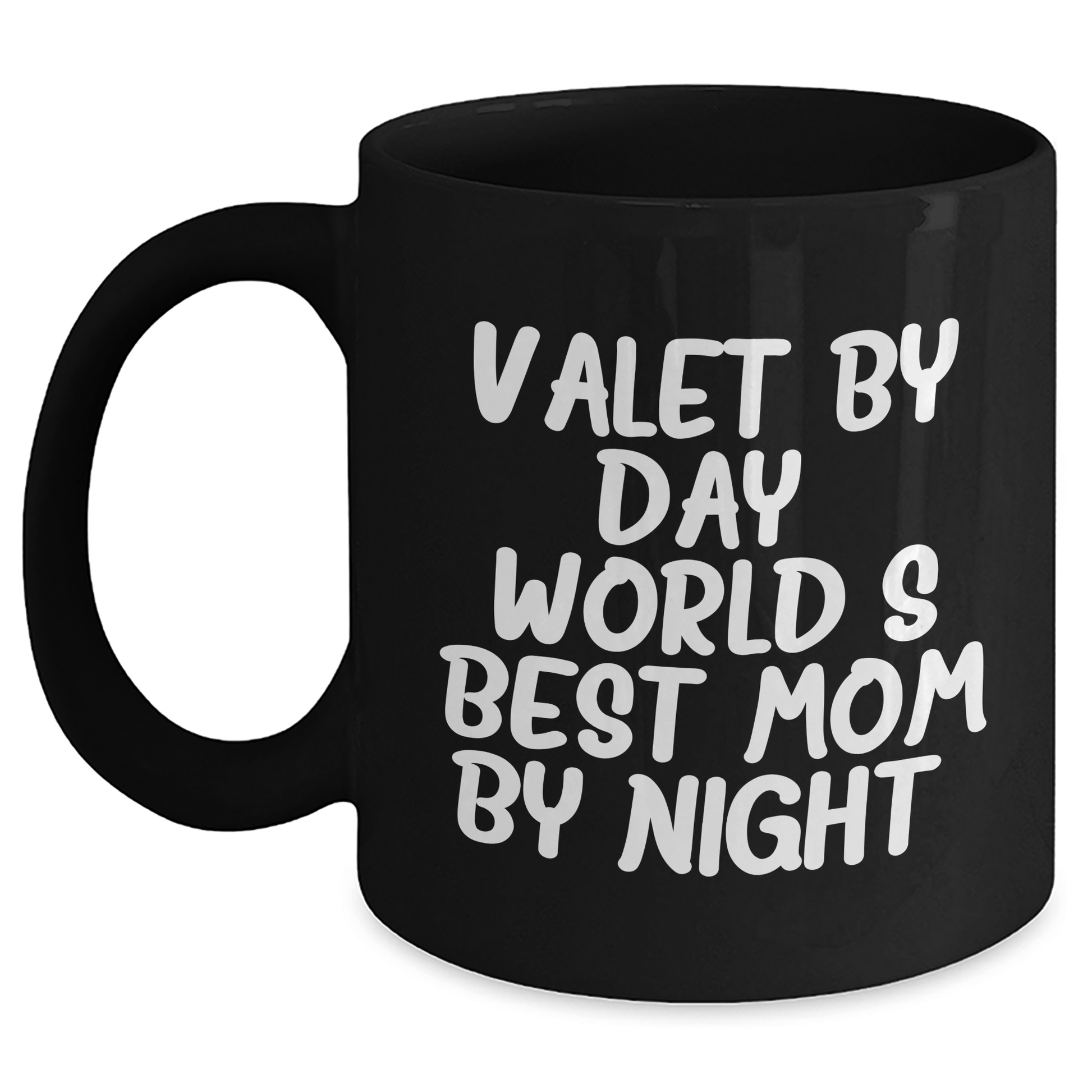 - This funny coffee mug is a unique gift for your valet-loving dad this Father's Day, featuring the quote 'Valet by Day, World's Best Mom By Night' to bring a smile to his face every time he uses it.