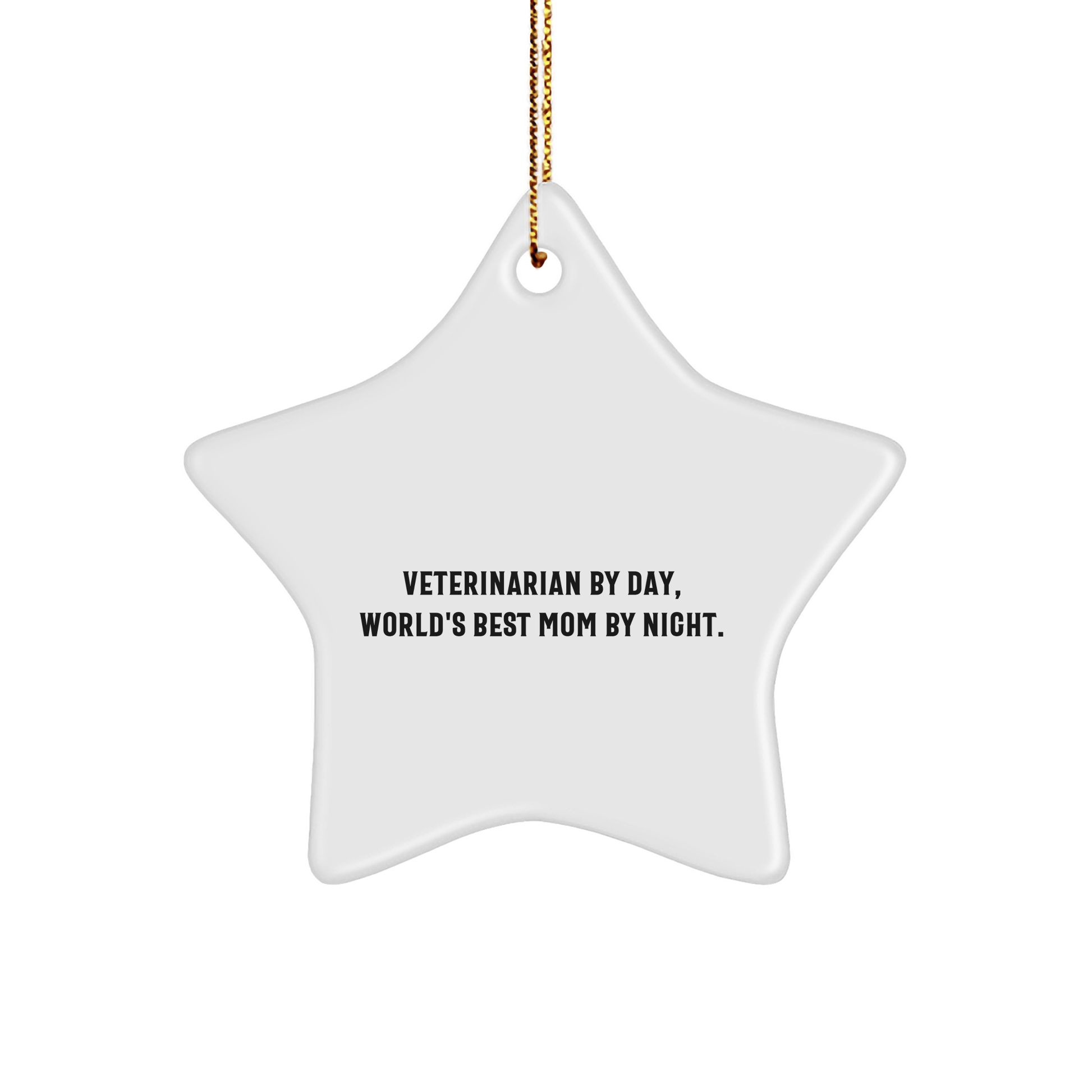Are you looking for a unique gift for the veterinarian in your life? Something that will make them smile and feel appreciated? Look no further! Our funny star ornament is the perfect choice. As a veterinarian by day and a world's best mom by night, this ornament is a great way to show your appreciation for their hard work and dedication. Made from sturdy MDF with a high-gloss plastic finish, this ornament is lightweight and resistant to breaking, making it a great choice for households with children or pets. The vibrant colors and festive design will add a touch of warmth and joy to any room. Whether you're a husband, wife, child, or friend, this ornament is the perfect way to say thank you for all that they do.