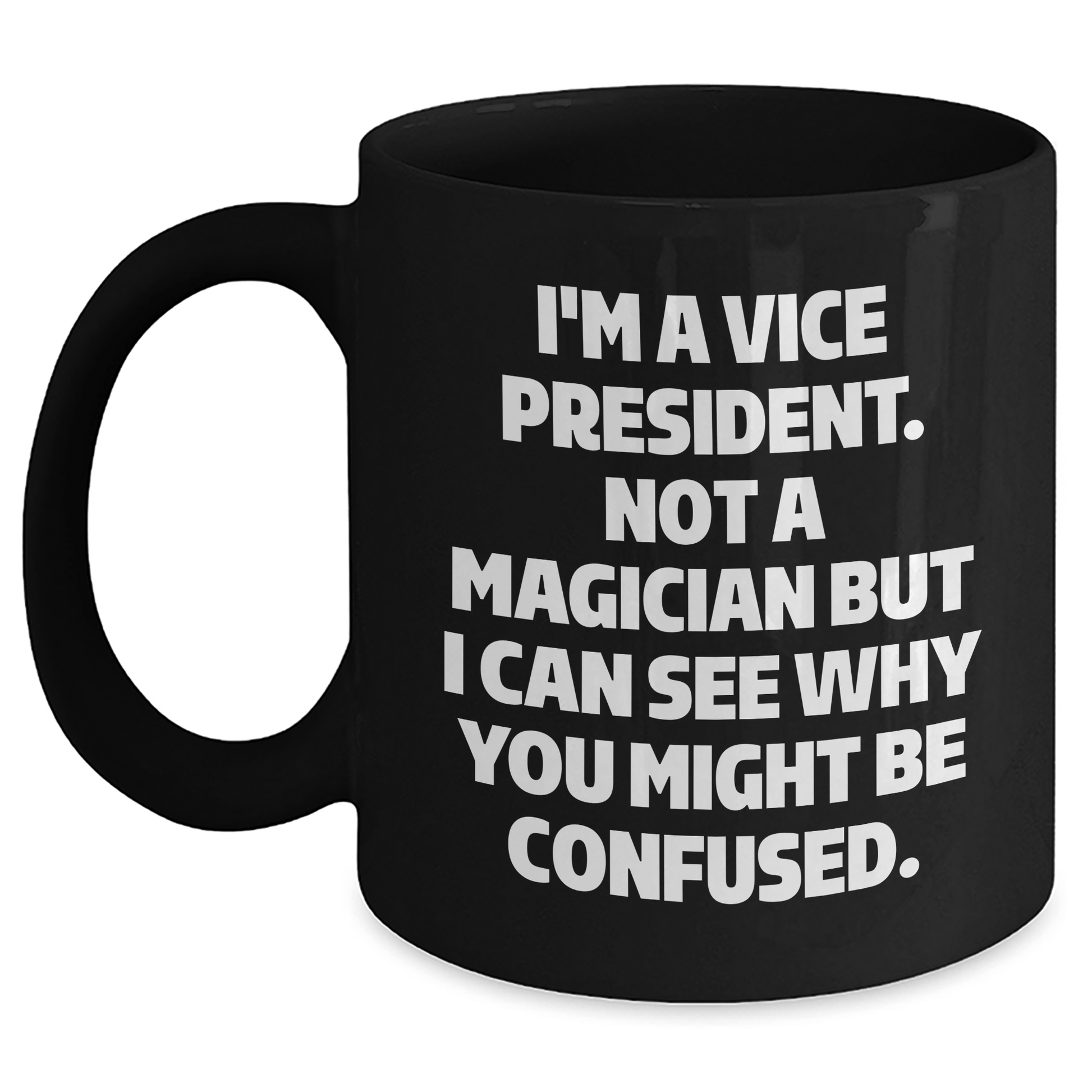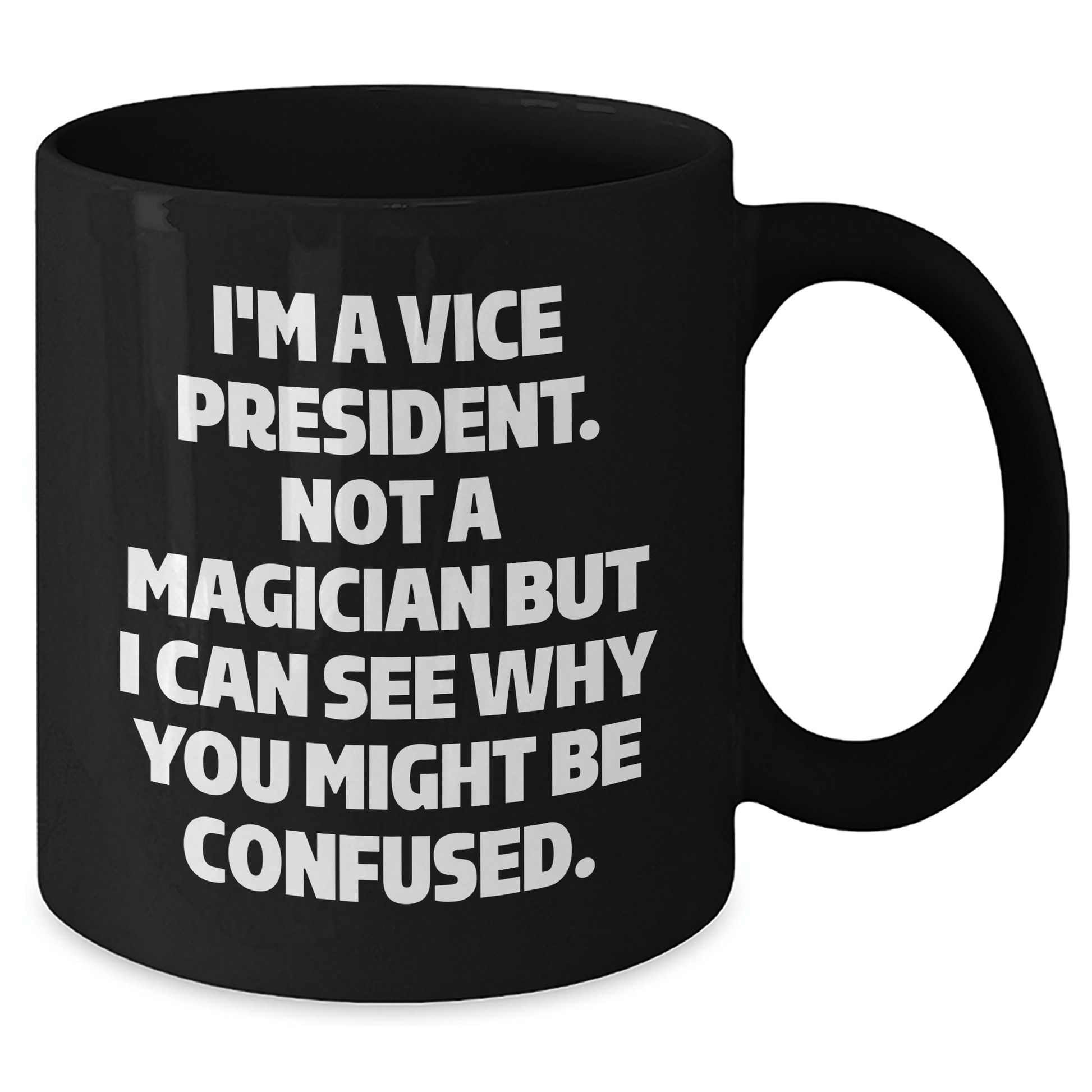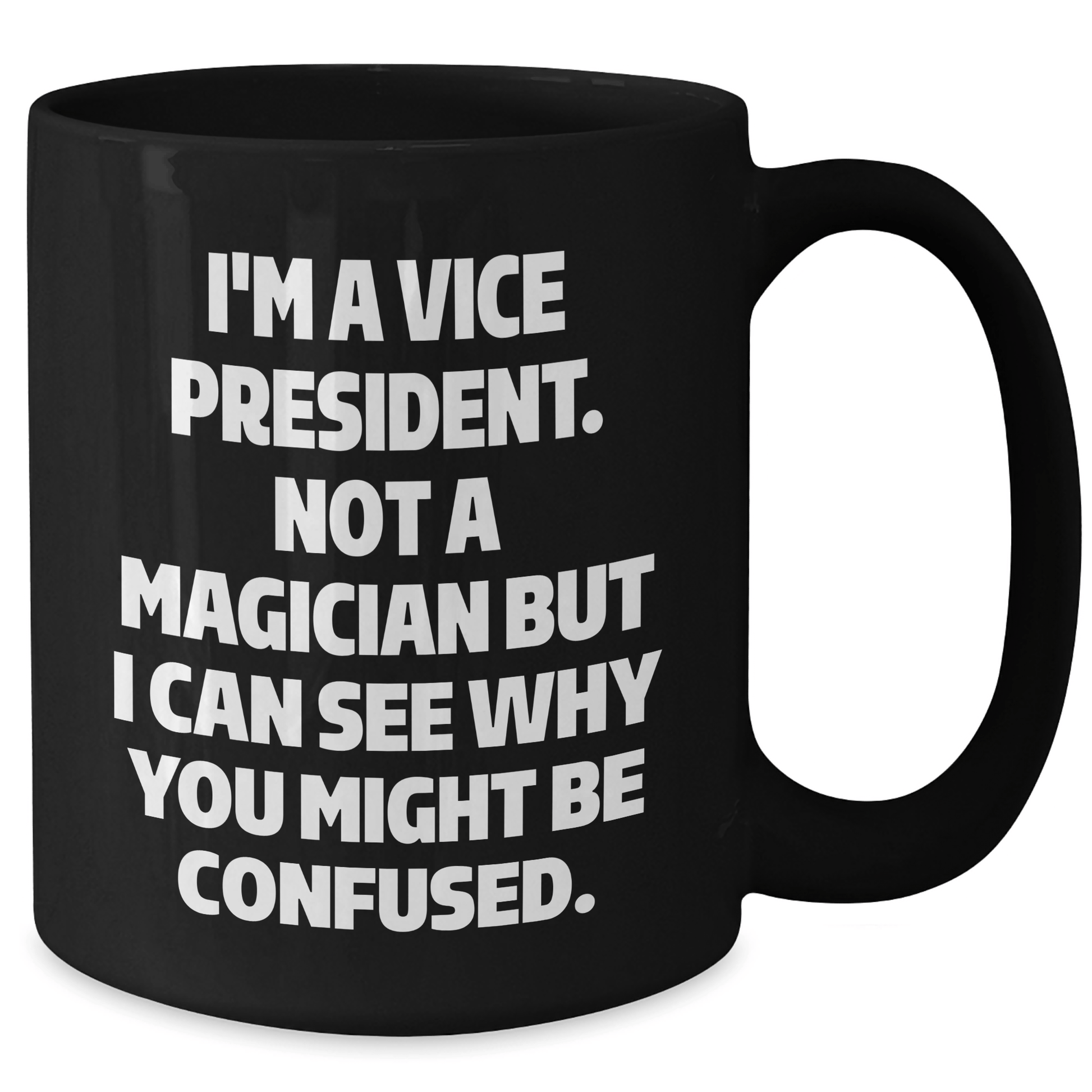 Are you looking for a unique gift for the Vice President in your life? Look no further! This funny black coffee mug is the perfect way to celebrate their achievement and add some humor to their morning routine. The mug is available in two sizes, 11oz and 15oz, making it perfect for anyone who loves a good cup of coffee or tea. The ceramic material is microwave and dishwasher safe, making it easy to clean and maintain. Whether you're a family member, friend, or coworker, this gift is sure to bring a smile to their face. So why wait? Don't miss out and show your appreciation for the Vice President in your life!