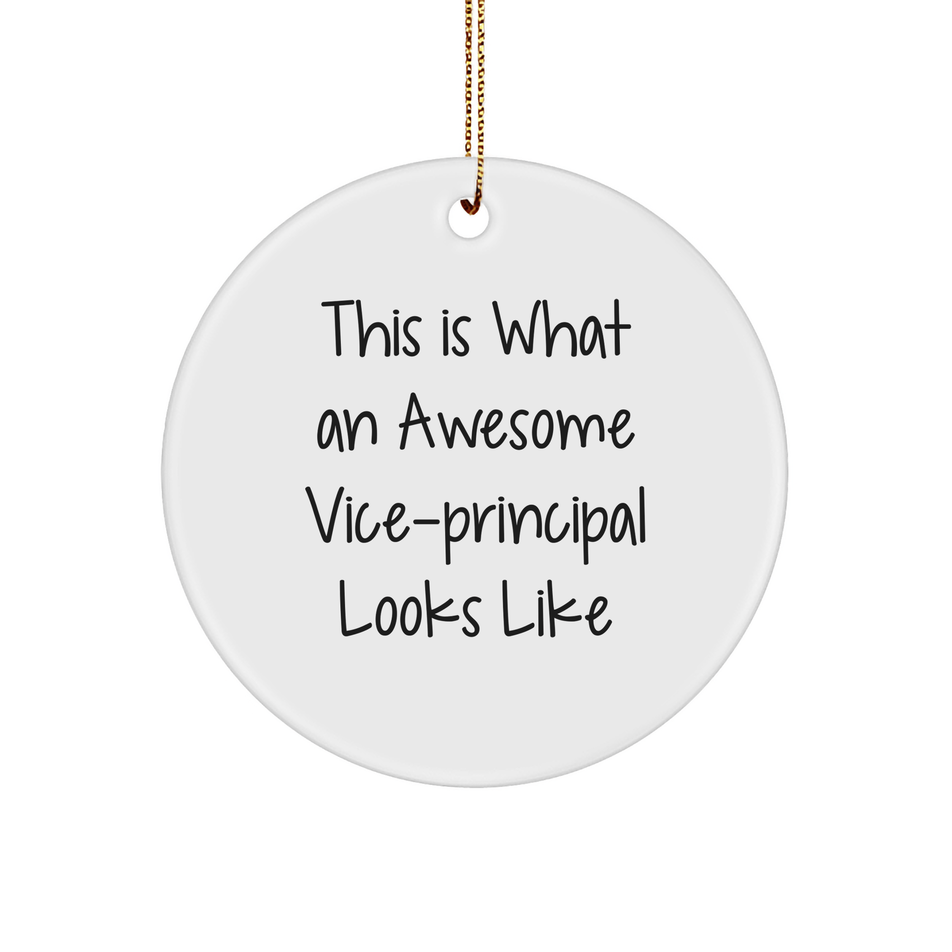 Are you looking for a unique gift for an awesome Vice-Principal? Look no further! This Vice-Principal Circle Ornament is the perfect way to show your appreciation and gratitude. The funny quote 'This Is What An Awesome Vice-Principal Looks Like' is printed on a high-quality MDF circle ornament, making it a thoughtful and personalized gift. Whether you're a teacher, a parent, or just a fan of Vice-Principals, this ornament is sure to bring a smile to their face.