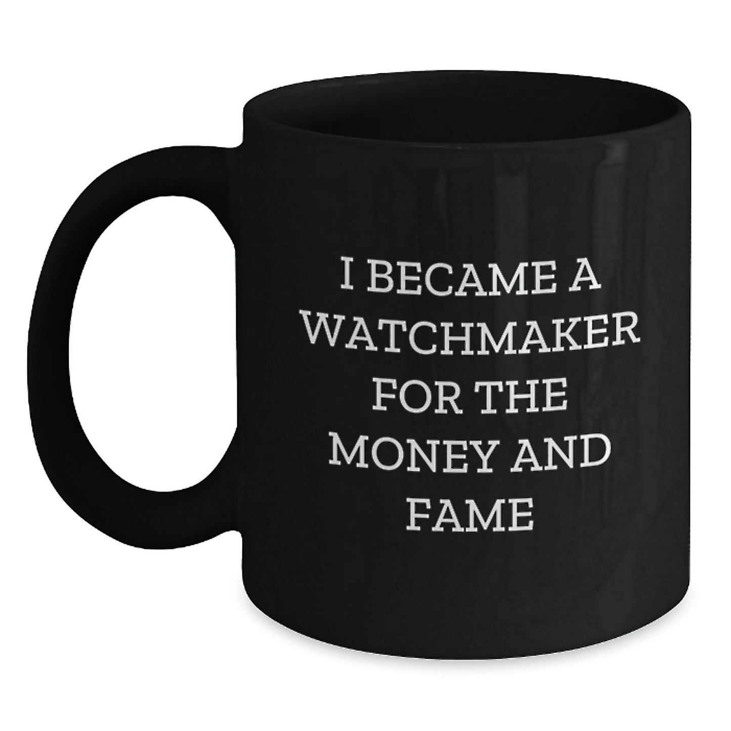 Are you a watchmaker enthusiast or looking for a unique gift for a watchmaker in your life? Look no further! This funny black coffee mug is a thoughtful way to express your appreciation for their profession. With a quote that says 'I Became A Watchmaker For The Money And Fame', this mug is a great conversation starter. The watchmaker's sense of humor will surely appreciate the irony behind this quote.