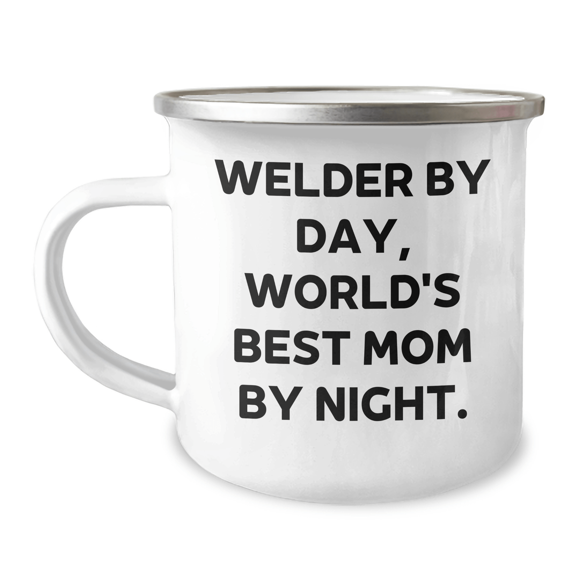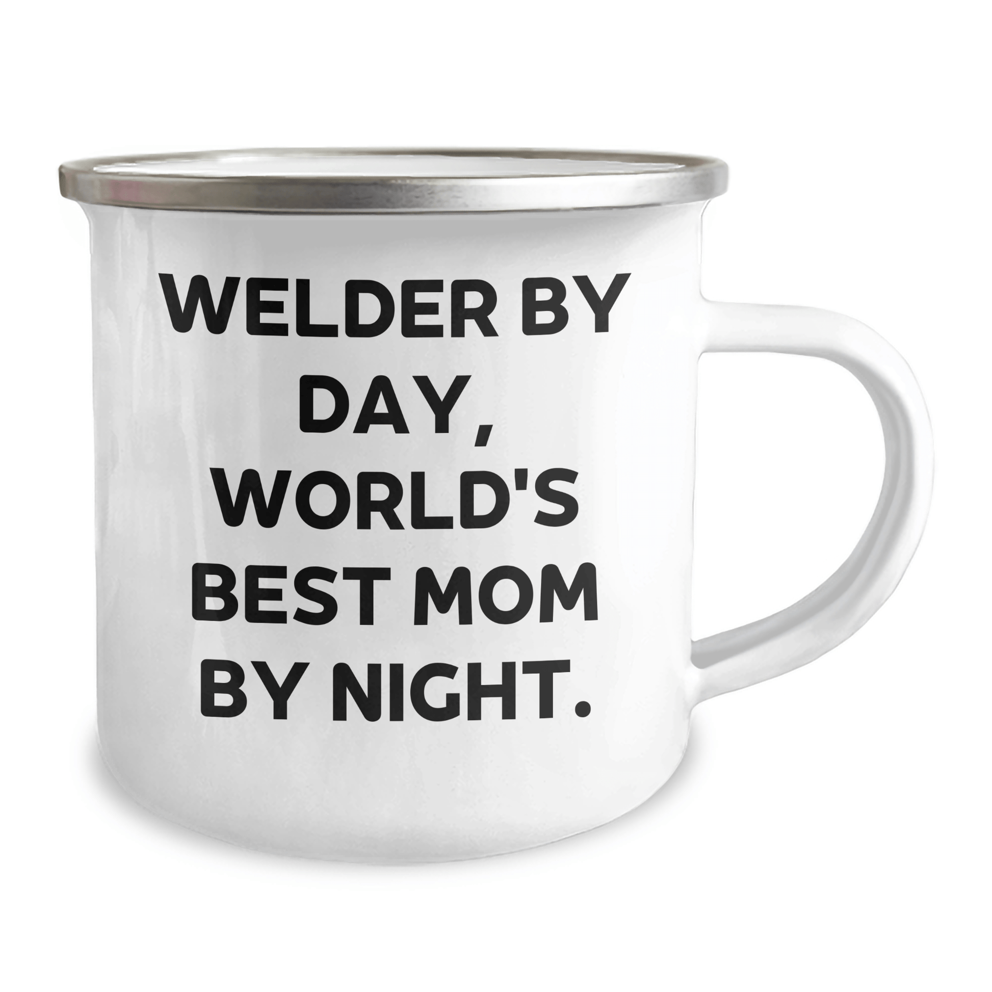 - Make a statement with this Welder-themed Camping Mug, perfect for the dad in your life who's a Welder by day and a World's Best Mom by night. Its stainless steel with enamel finish ensures durability and a comfortable hold.