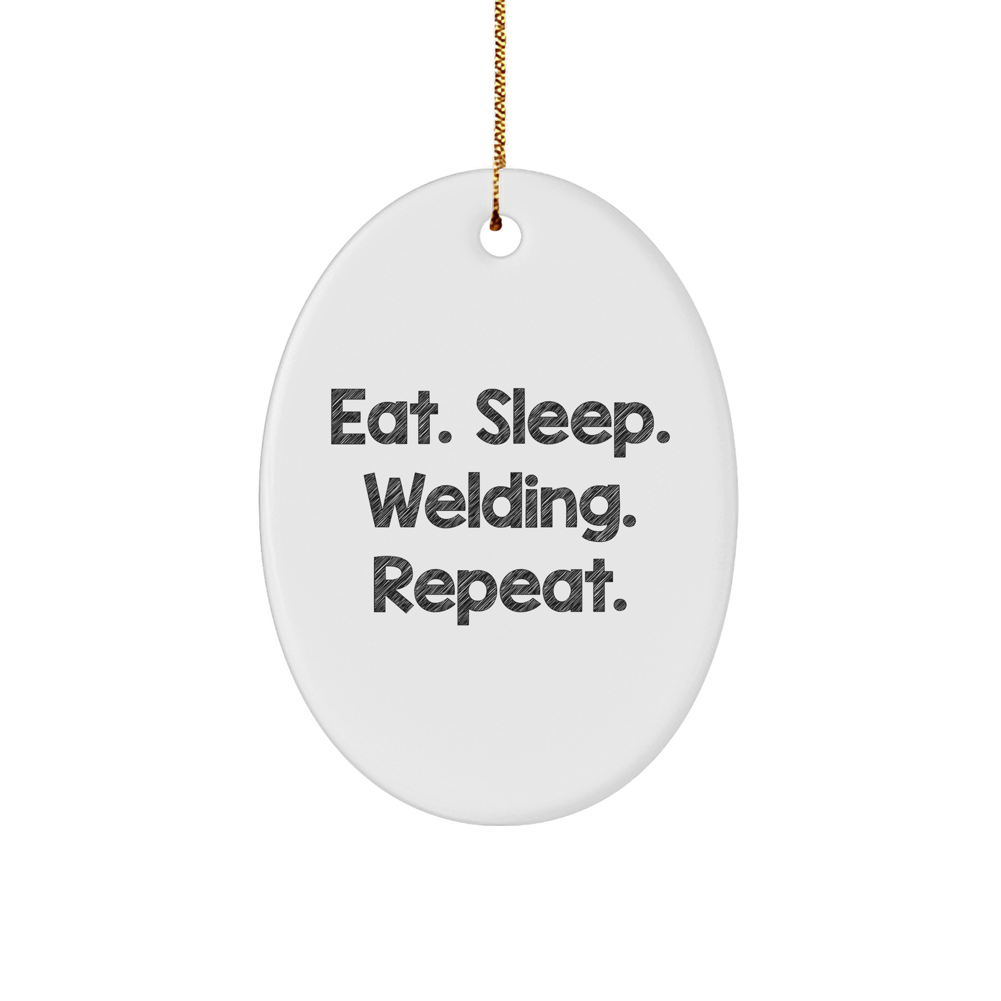 - This Eat. Sleep. Welding. Repeat. Oval Ornament is a thoughtful gift for any Welding enthusiast, whether it's a coworker, friend, or family member.