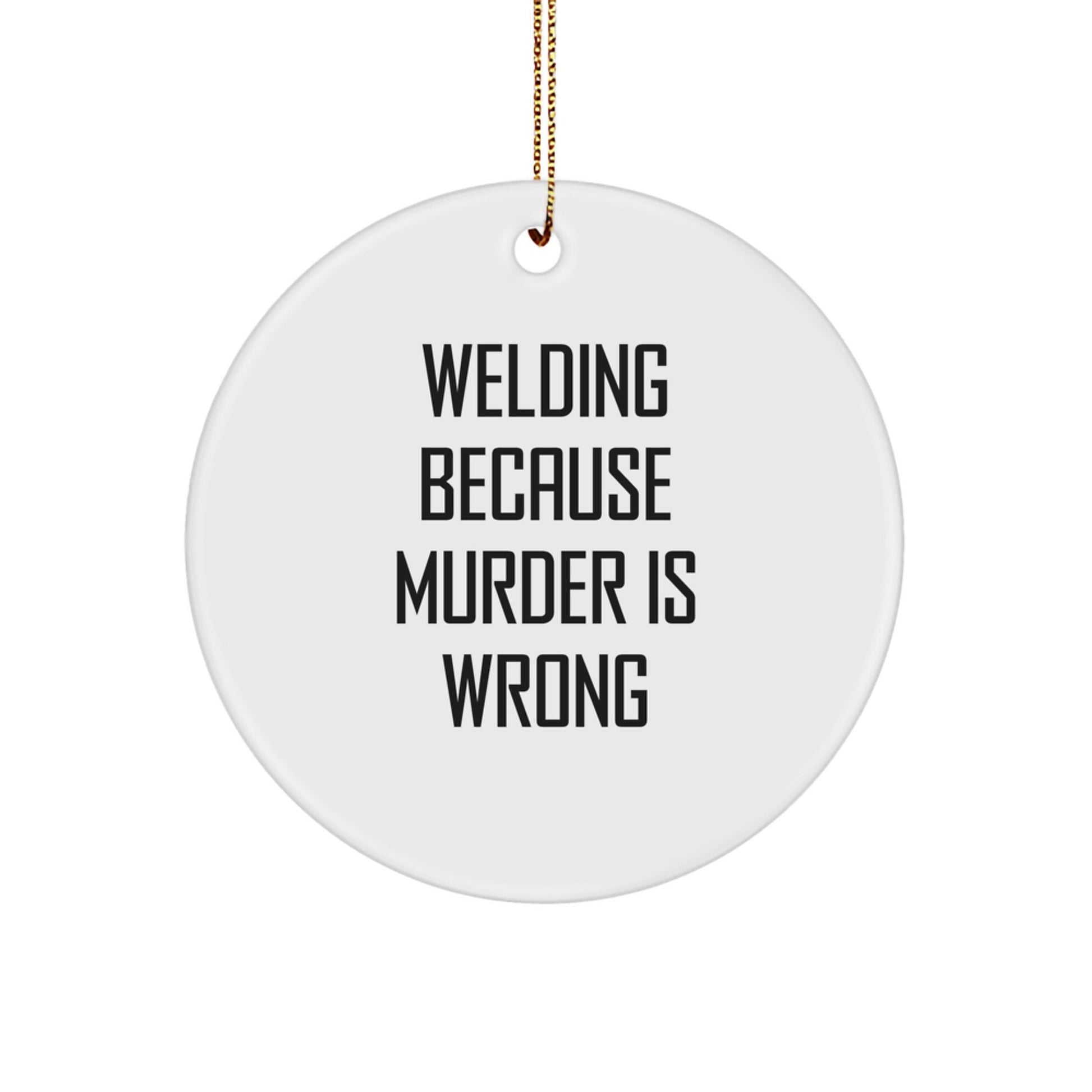 - Unique Circle Ornament featuring the hilarious quote 'Welding Because Murder Is Wrong' - a ideal gift for Welding enthusiasts