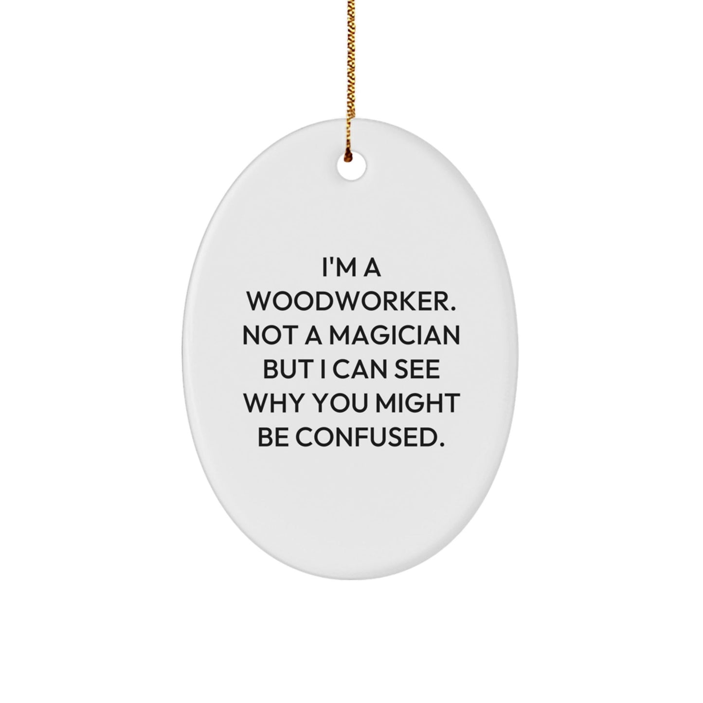 Whether you're a woodworker yourself or know someone who is, this unique gift will bring a smile to their face. The perfect addition to any woodshop or home decor, this oval ornament is a thoughtful and humorous way to show your appreciation for the woodworker in your life. So why wait? Don't miss out and get ready to make some woodworker's day!