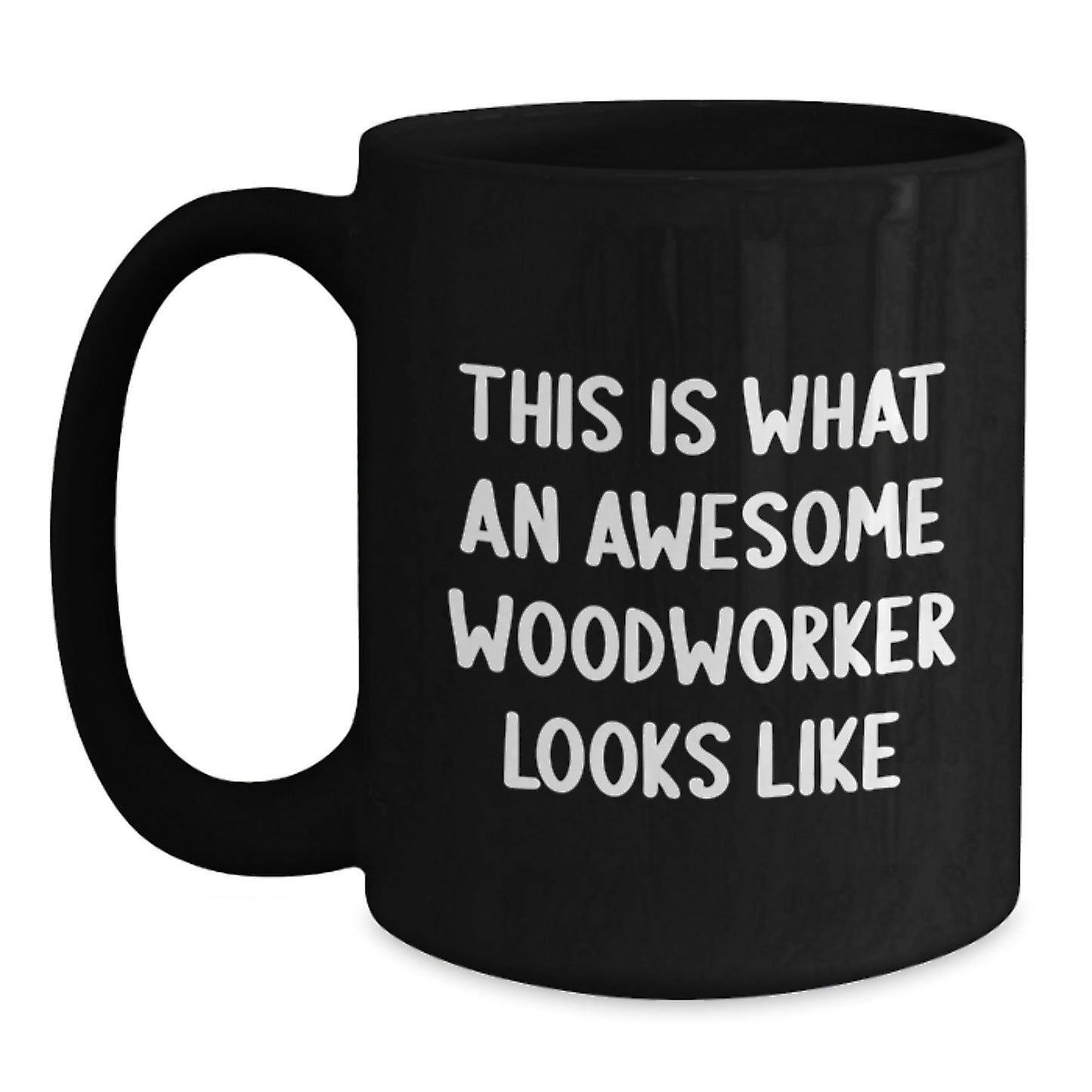 - This black coffee mug is the ideal gift for any woodworker, whether it's for a birthday or just because. Its funny quote, 'This Is What An Awesome Woodworker Looks Like', is sure to bring a smile to their face. And with its ceramic design, it's safe to use in the microwave and dishwasher.
