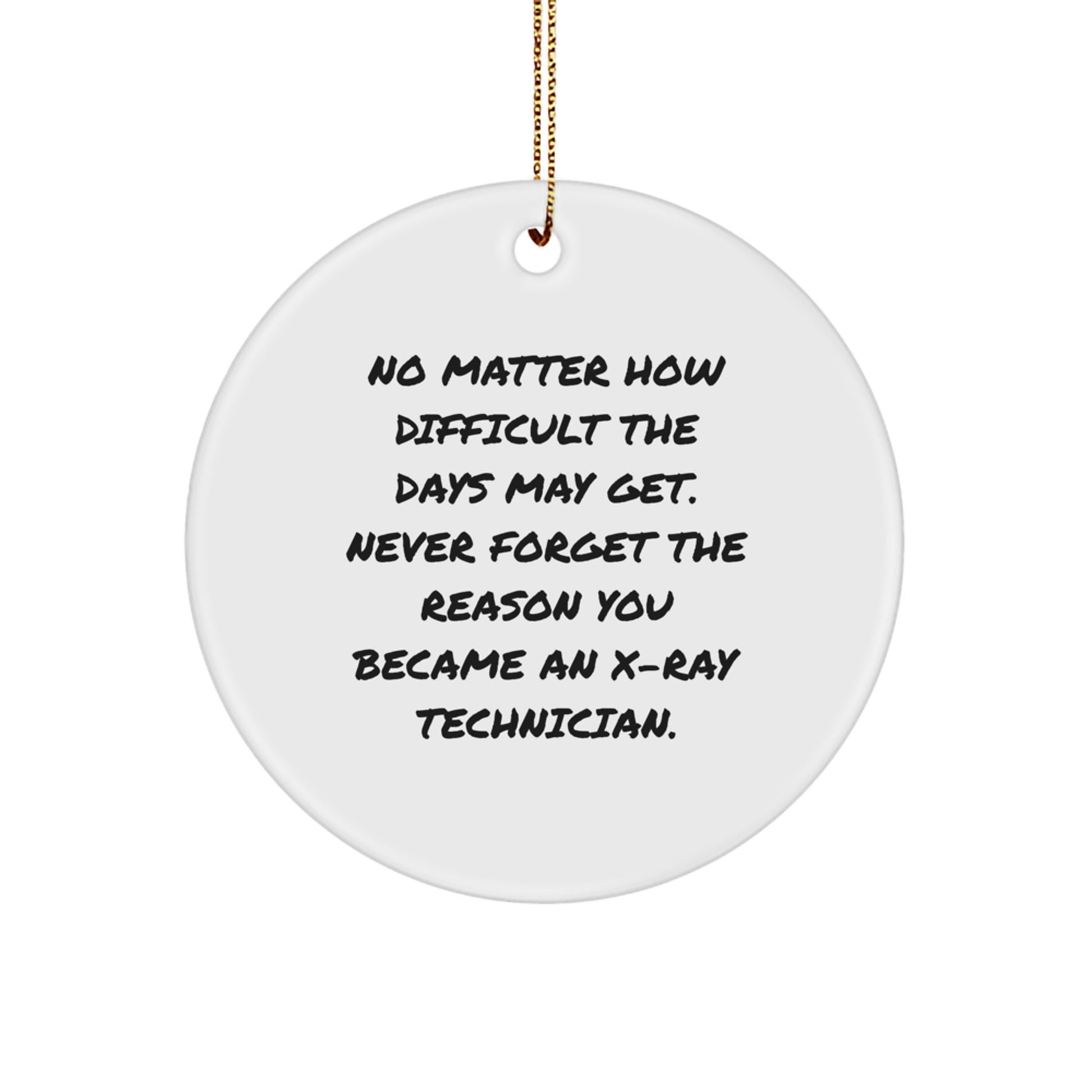 - Inspire an X-Ray Technician in your life with this motivational circle ornament, featuring the quote 'No Matter How Difficult The Days May Get. Never Forget The Reason You Became An X-ray Technician.'